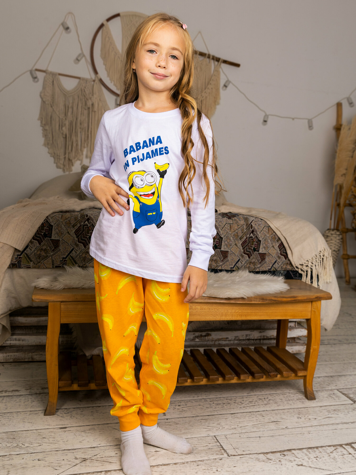 Пижама детская легкая с длинным рукавом Miko Yumi Бананы размер 134