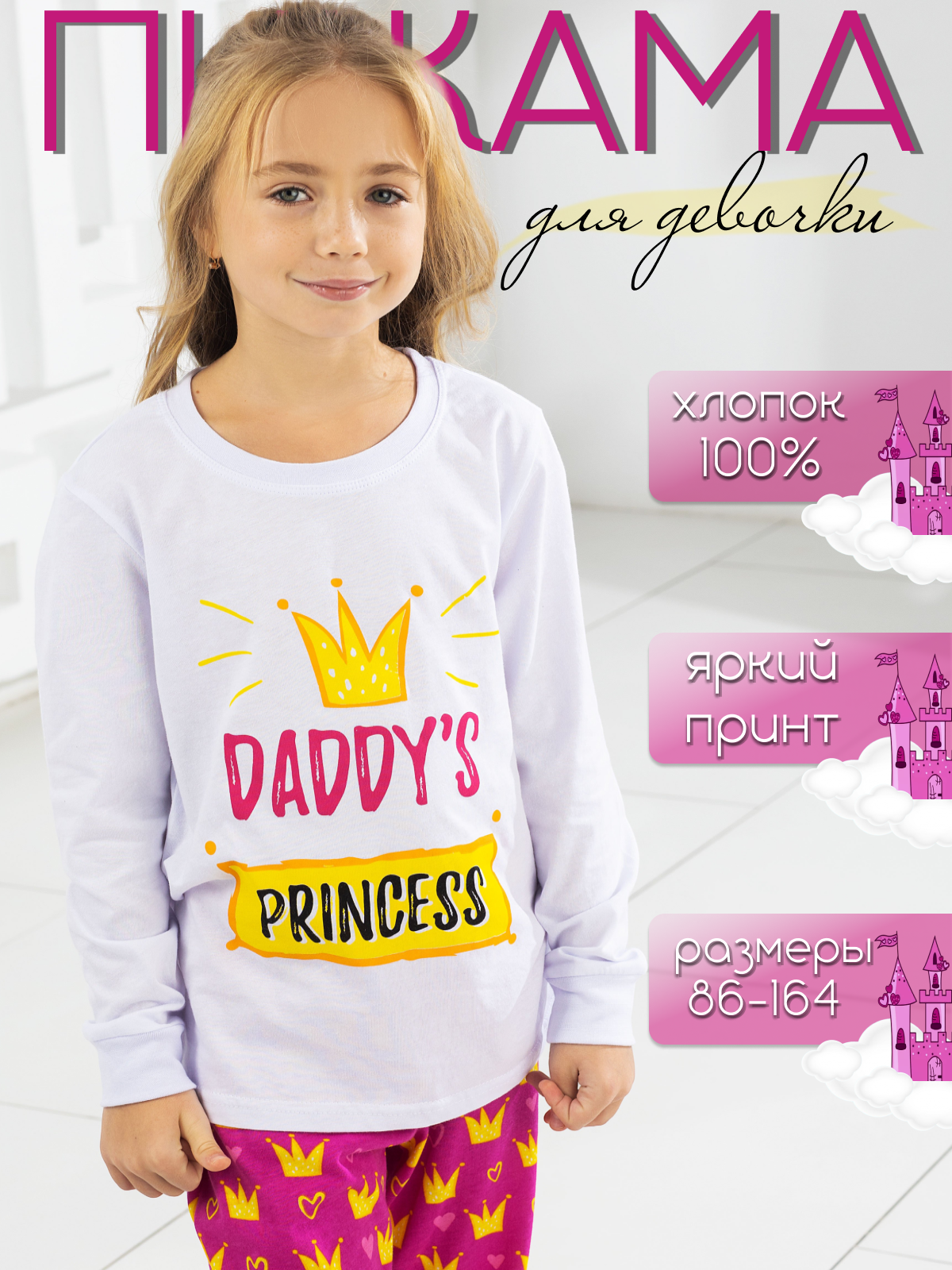 Пижама детская легкая с длинным рукавом Принцесса Miko Yumi размер 104