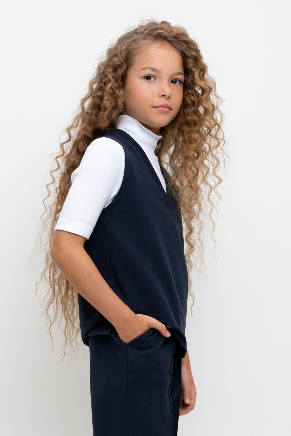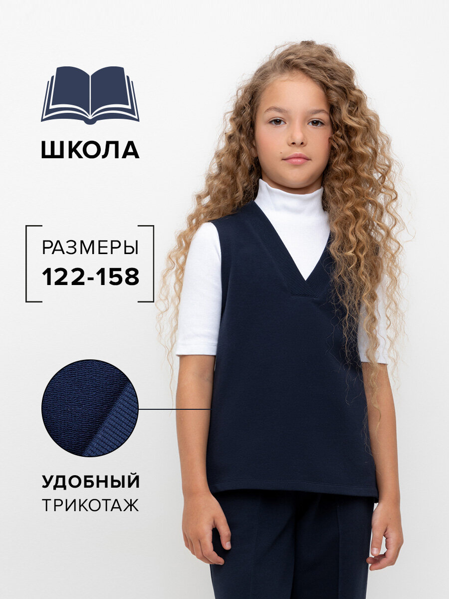 Школьный жилет для девочки, Crockid К 302490/индиго р 64/128