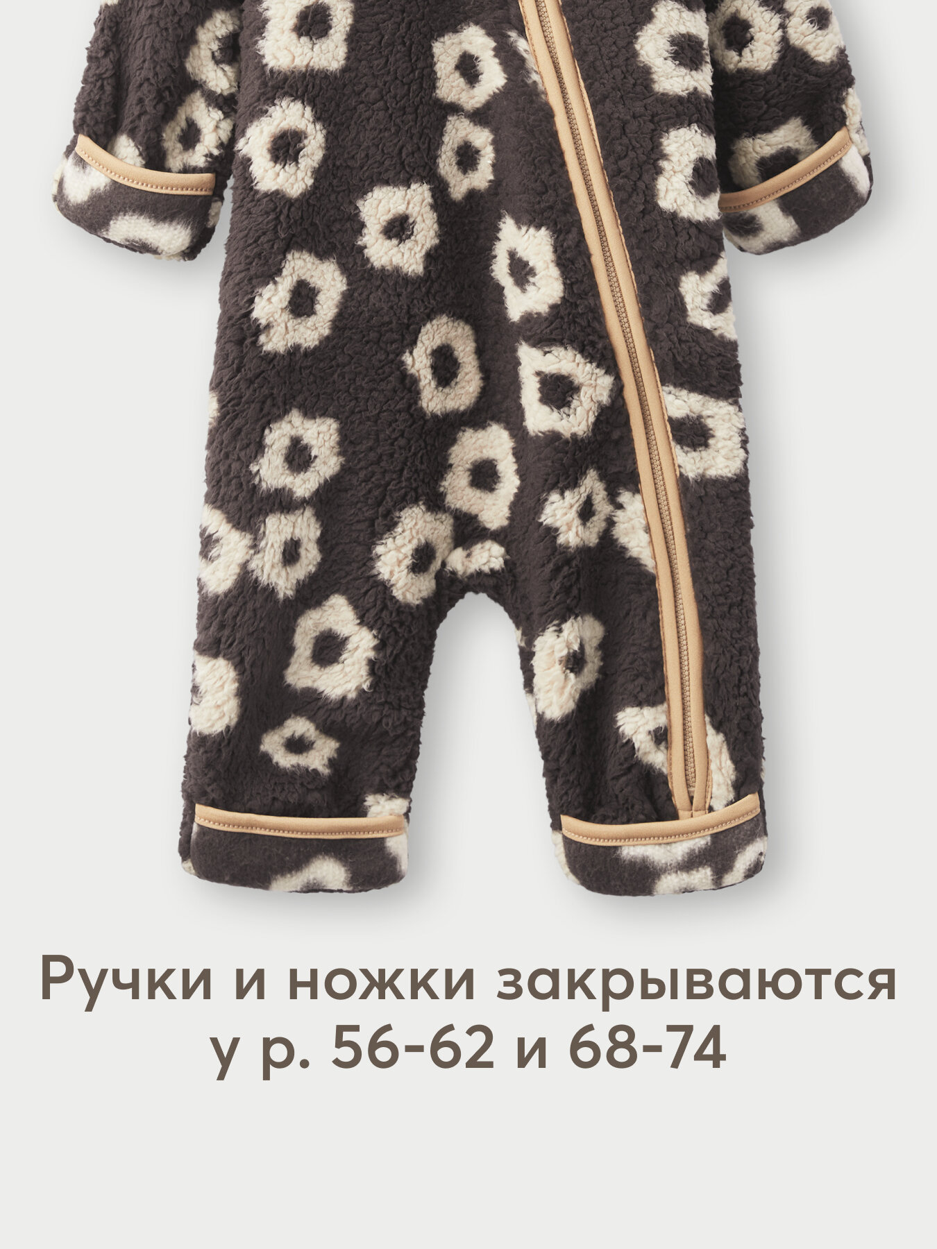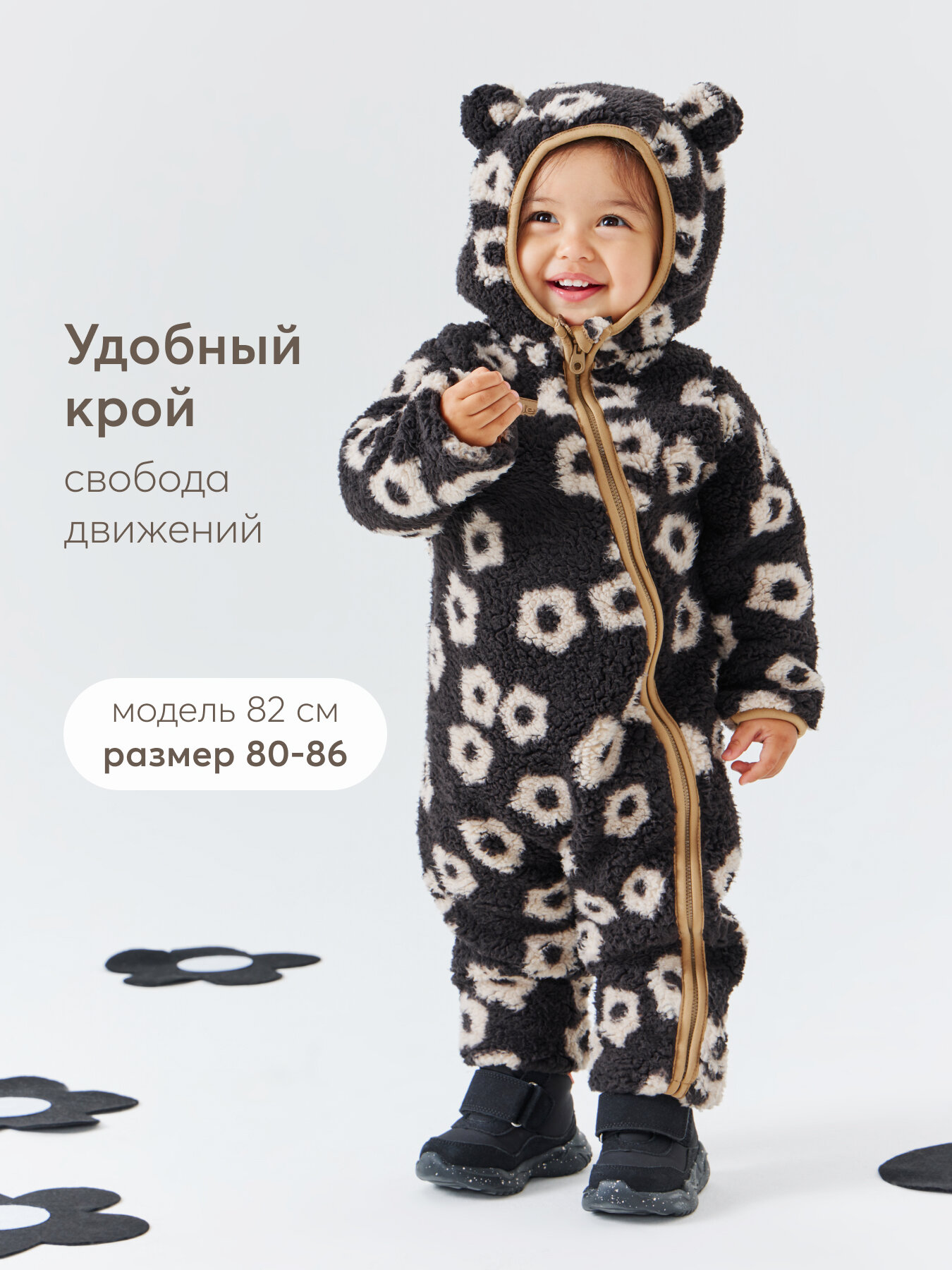 89054, Комбинезон для новорожденных Happy Baby, флисовый, с ушками, демисезонный, коричневый, размер 80-86