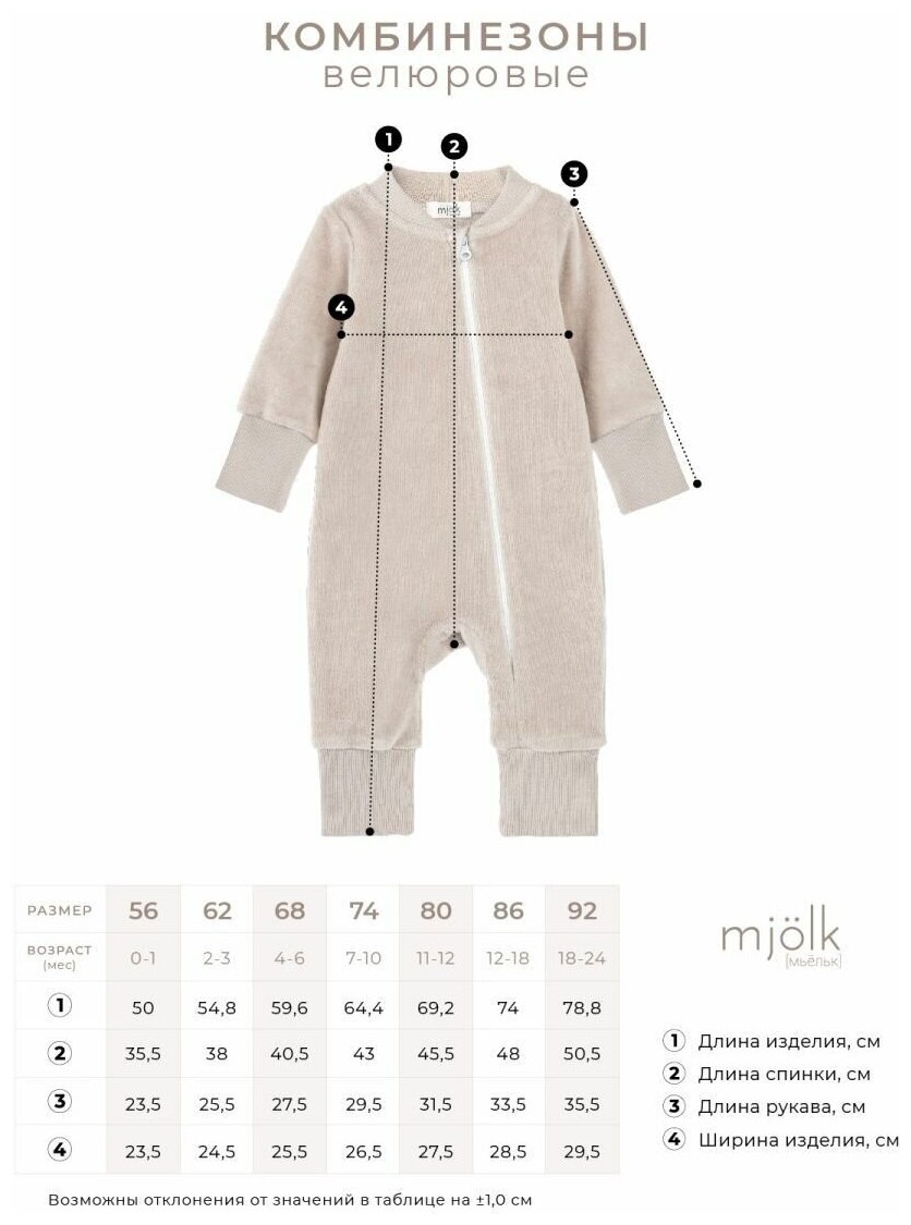 Велюровый комбинезон Mjolk White Sand, на манжетах (62)