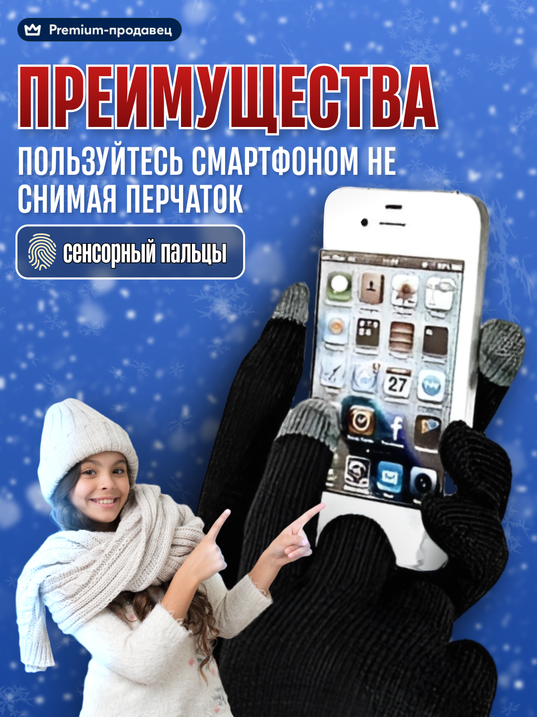 | Подробная комплектация | Перчатки сенсорные для подростков; индивидуальная упаковка |