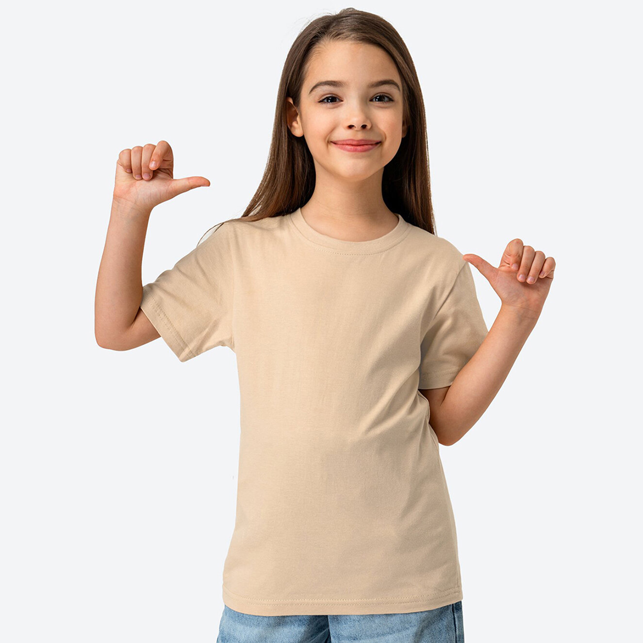 Детская базовая однотонная футболка, HappyFox HF5501 песочный 128