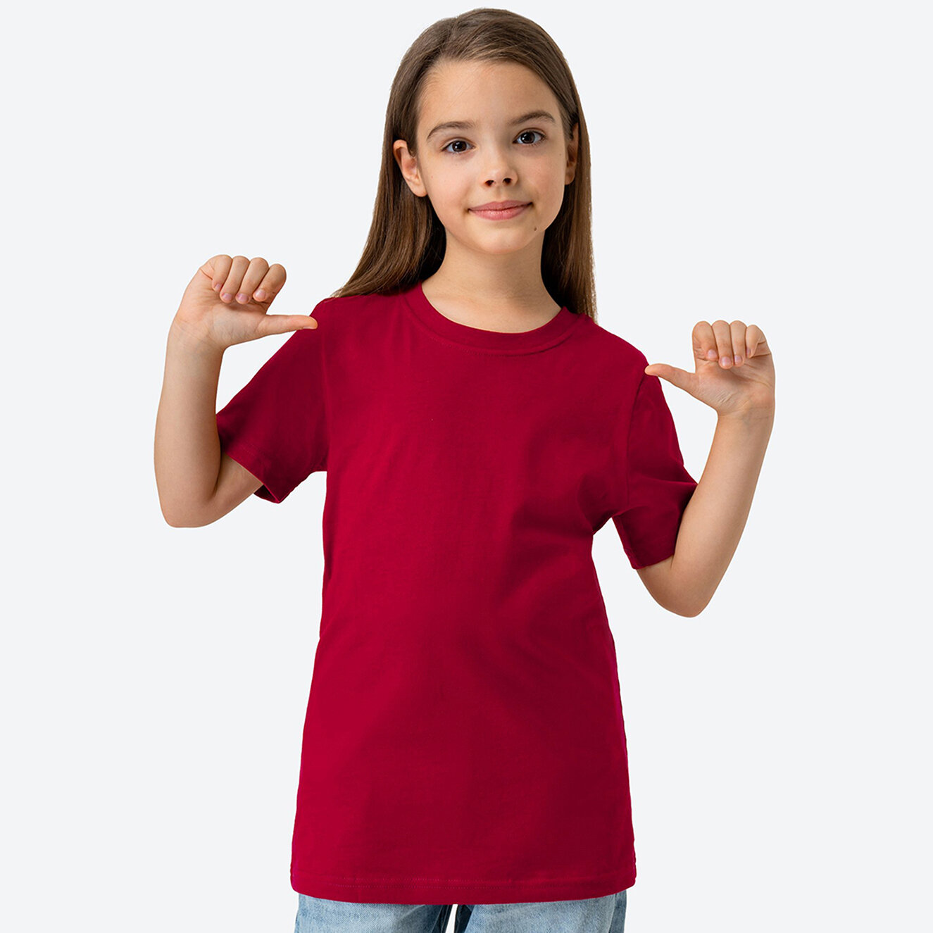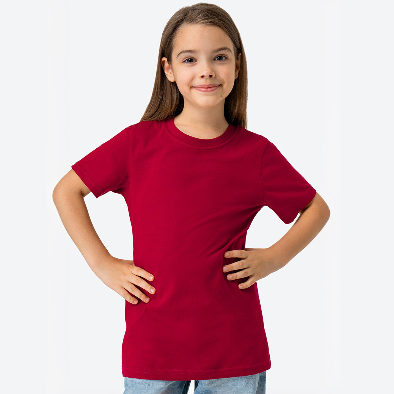 Детская базовая однотонная футболка, HappyFox HF5501 т.бордовый 146