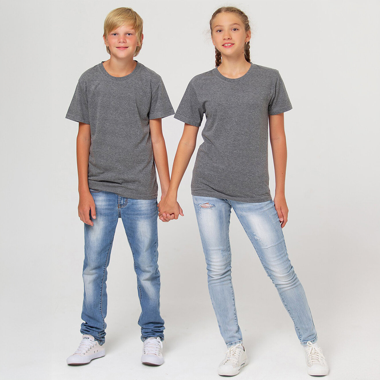 Детская базовая однотонная футболка, HappyFoxHF5501 серыймеланж 164