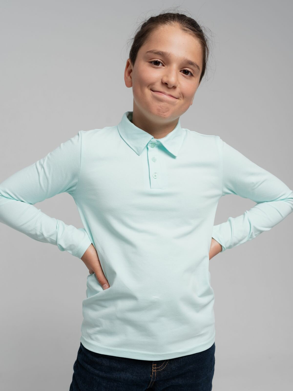 Футболка поло для школы с длинным рукавом, мятно-бирюзовый цвет, размер 164
