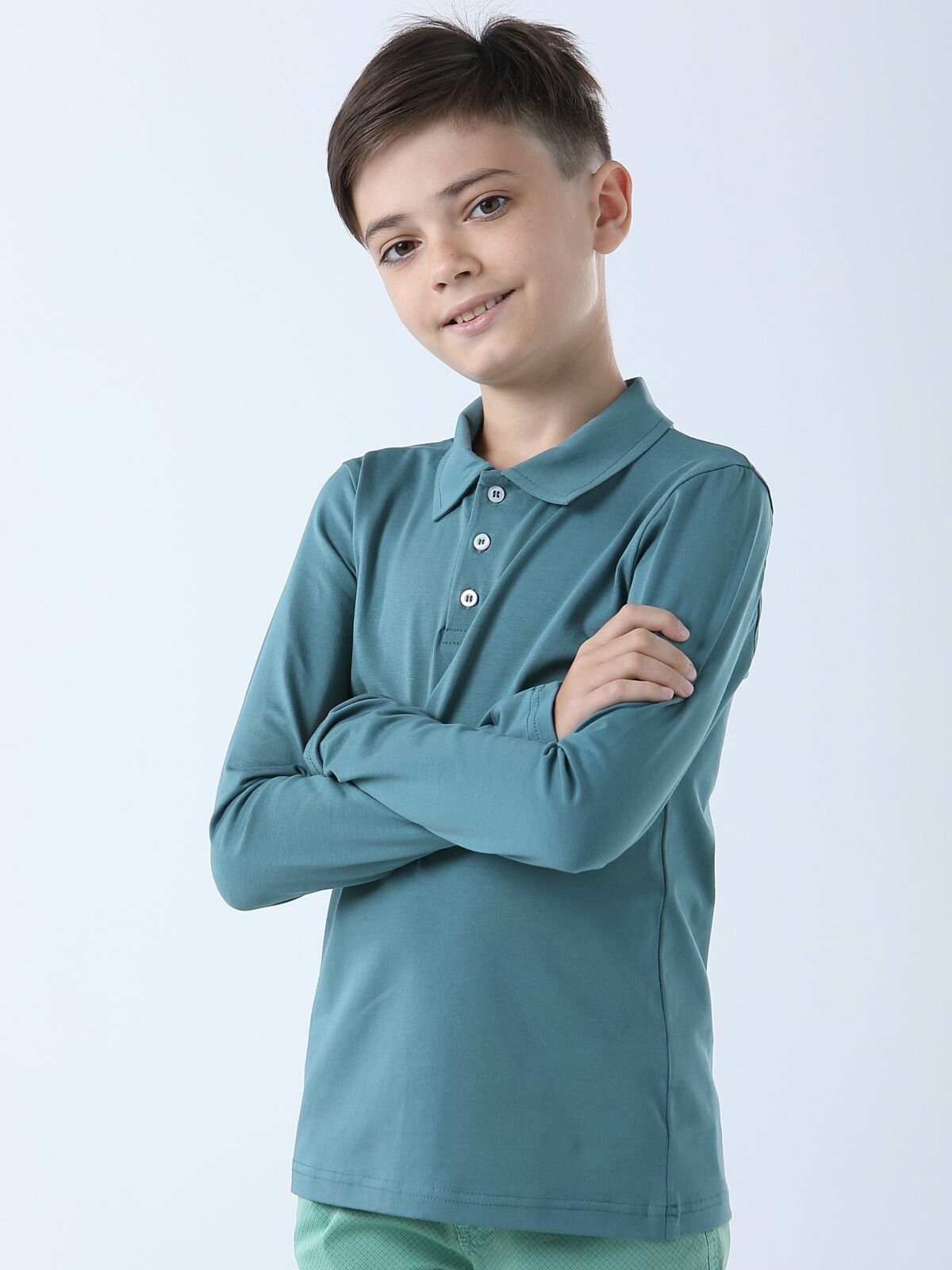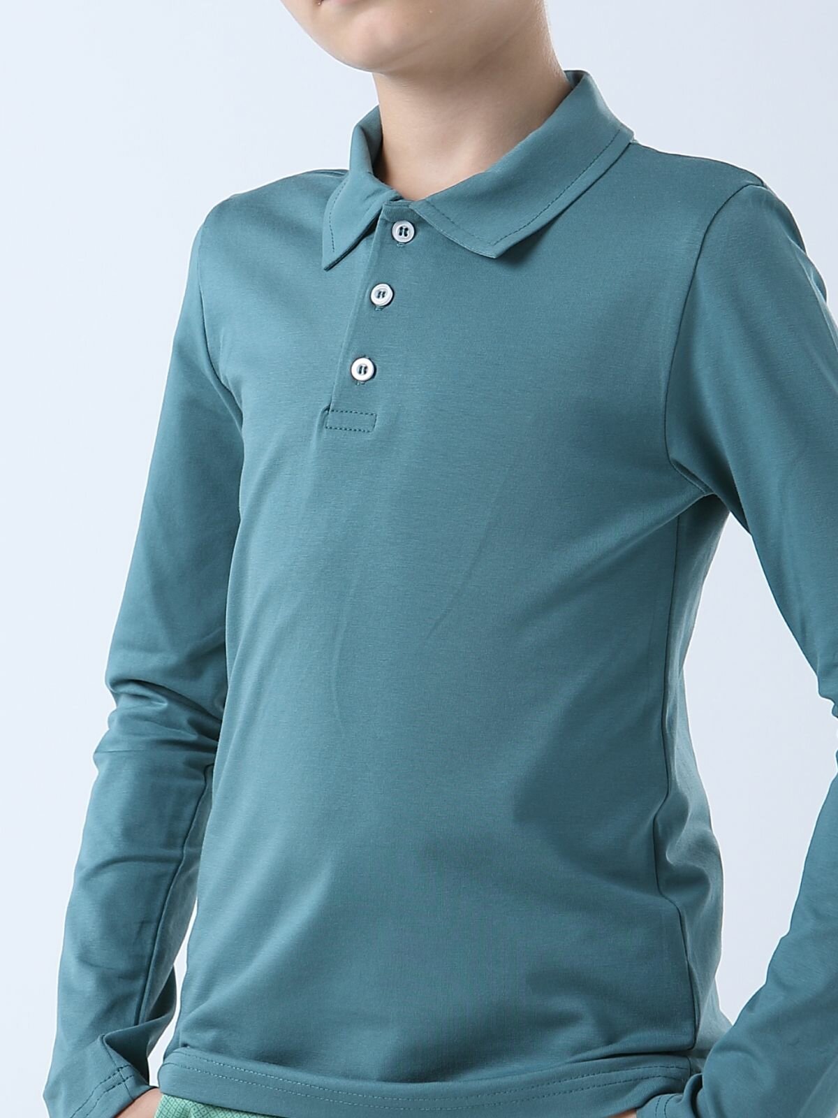 Футболка для мальчика LADNO Поло мятная с длинным рукавом 170