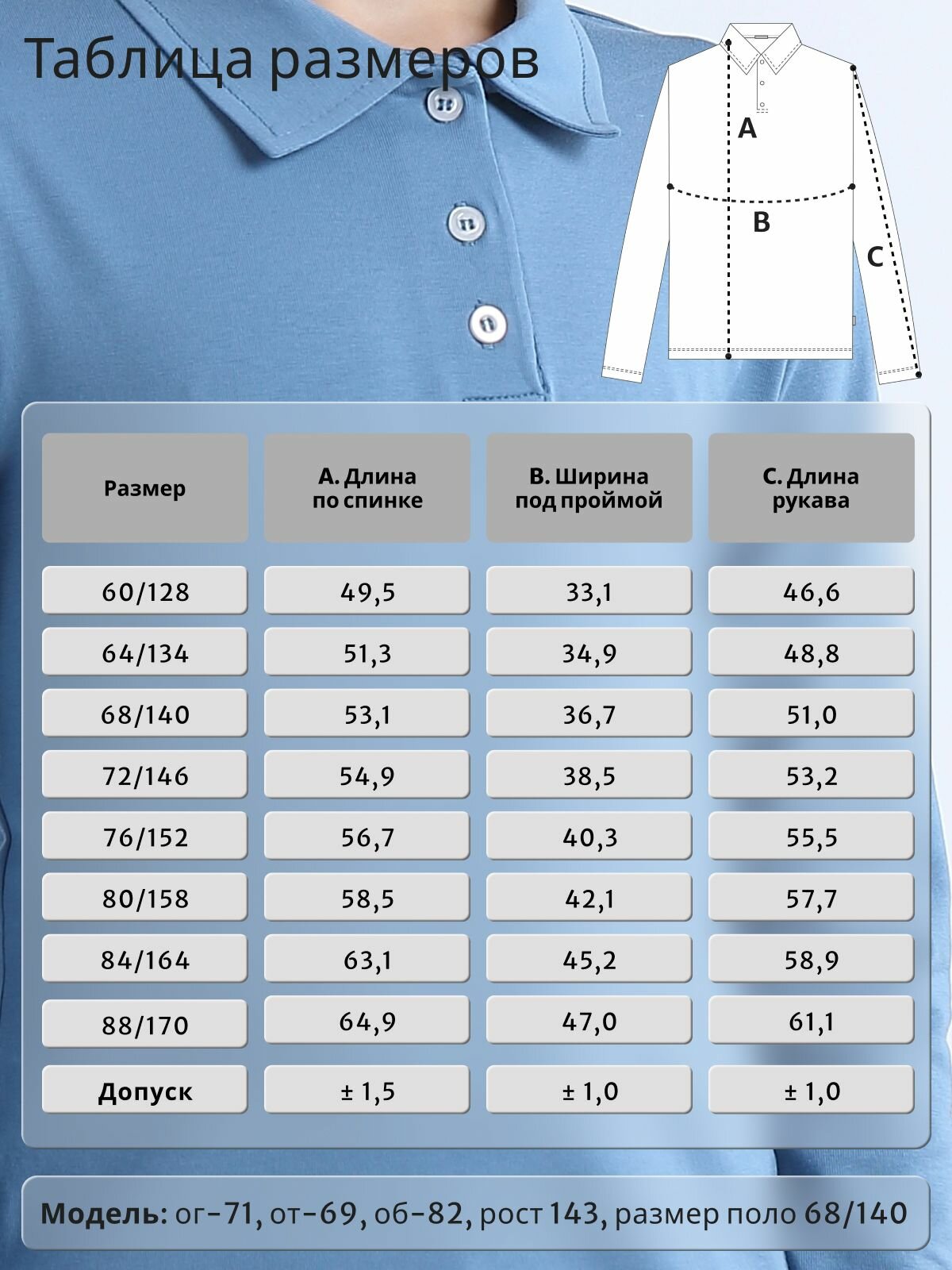 Купить Поло LADNO Весна - лето 2025, размер 80, Джинс