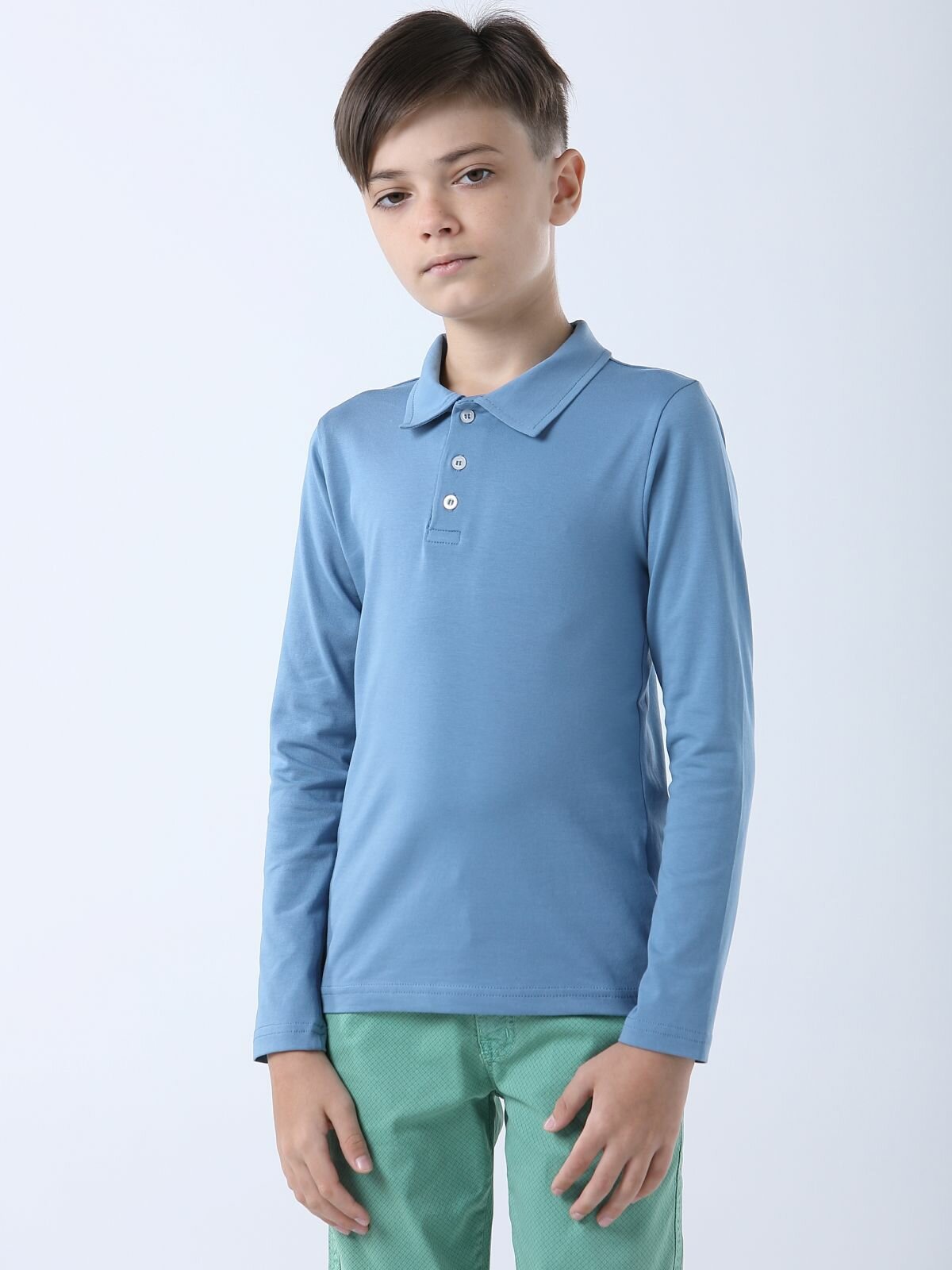 Футболка для мальчика LADNO Поло мятная с длинным рукавом 170
