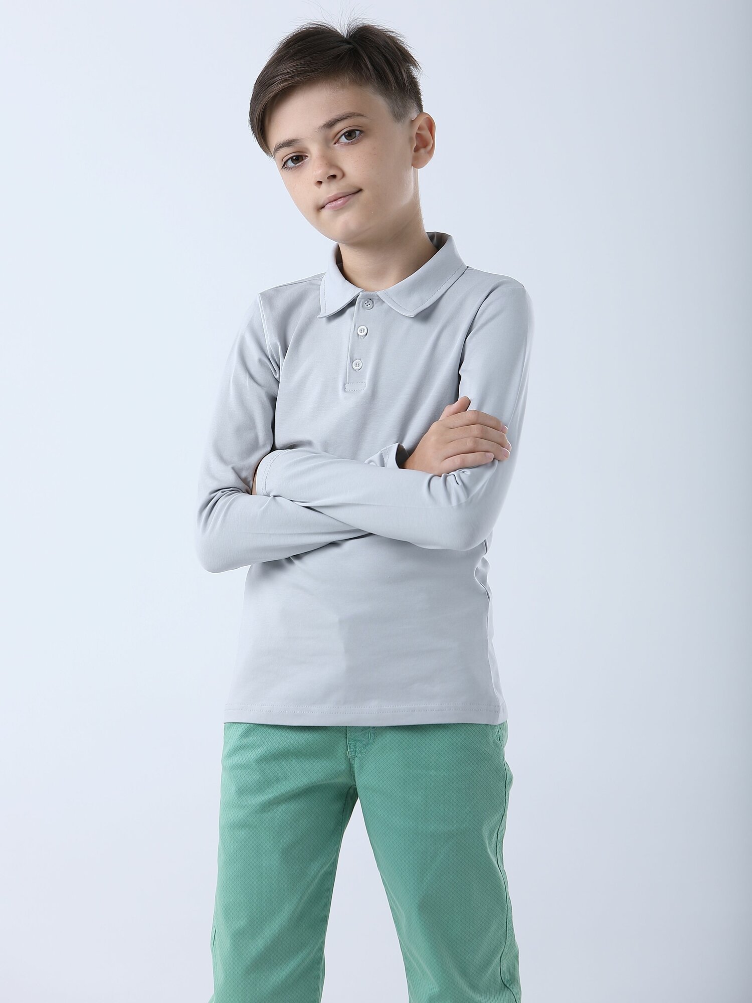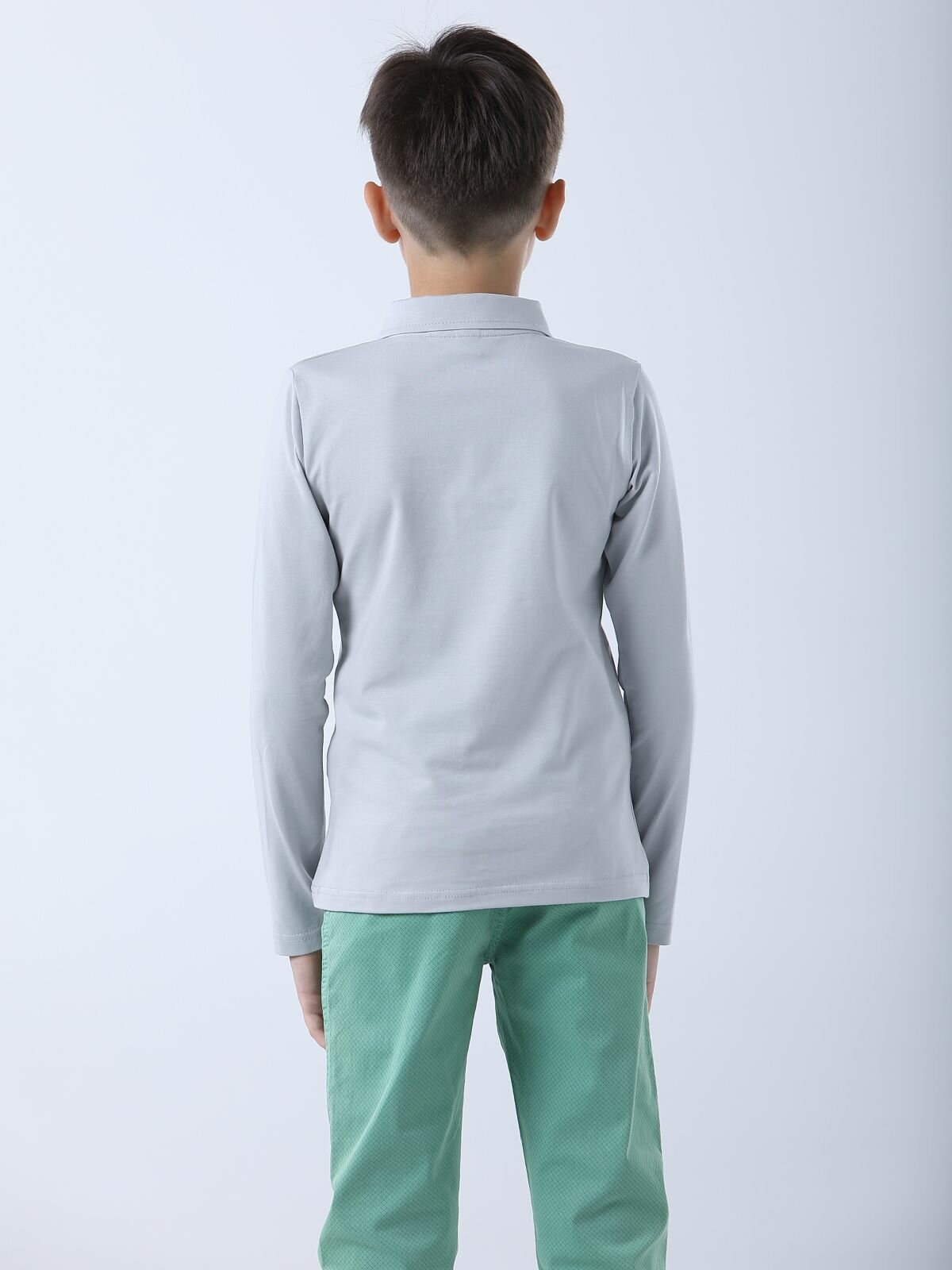 Футболка-поло для мальчика LADNO с длинным рукавом, серая, 140