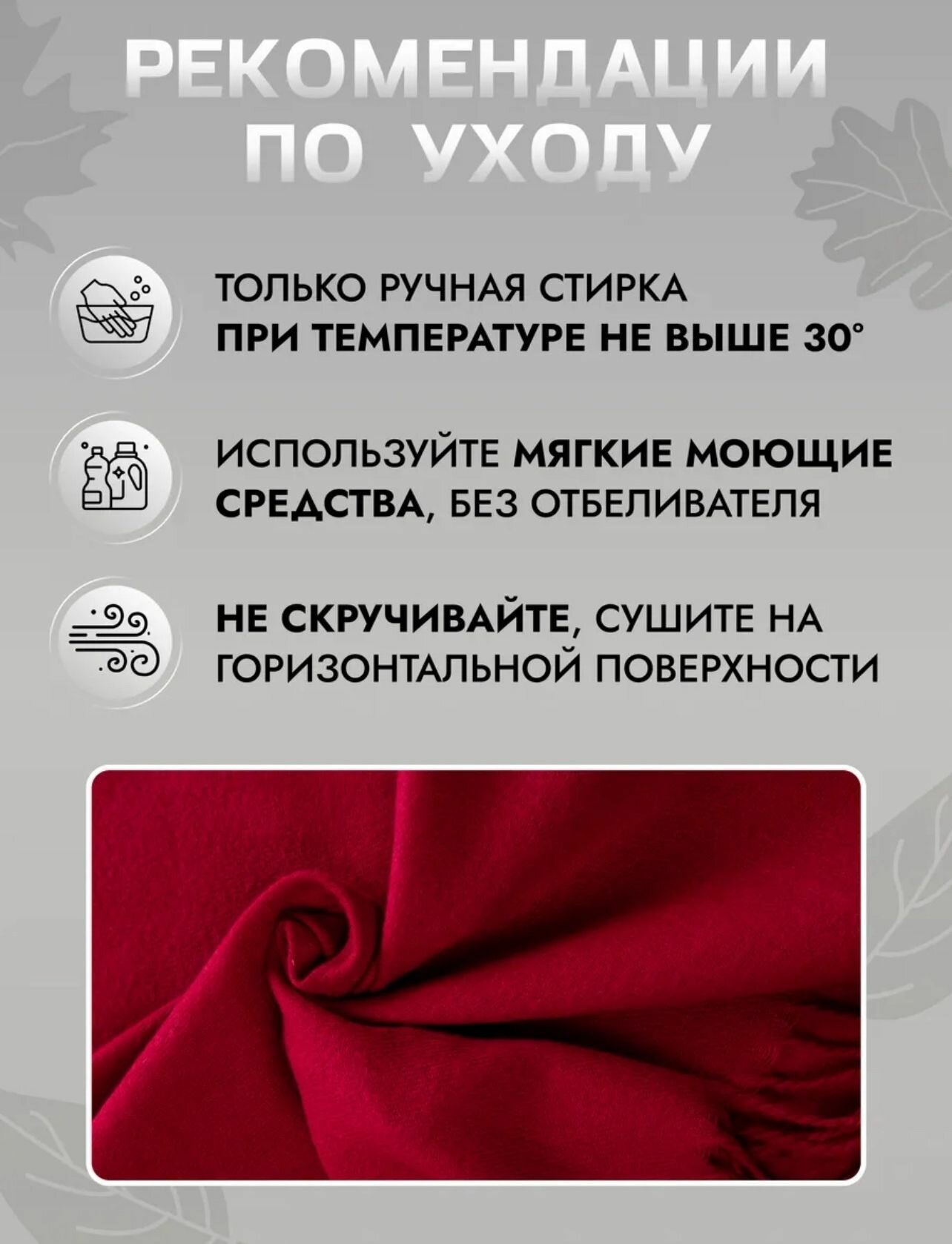 | Дополнительная информация | рекомендации по уходу: Стирка на деликатном режиме при температуре 30 градусов без отбеливателя. |