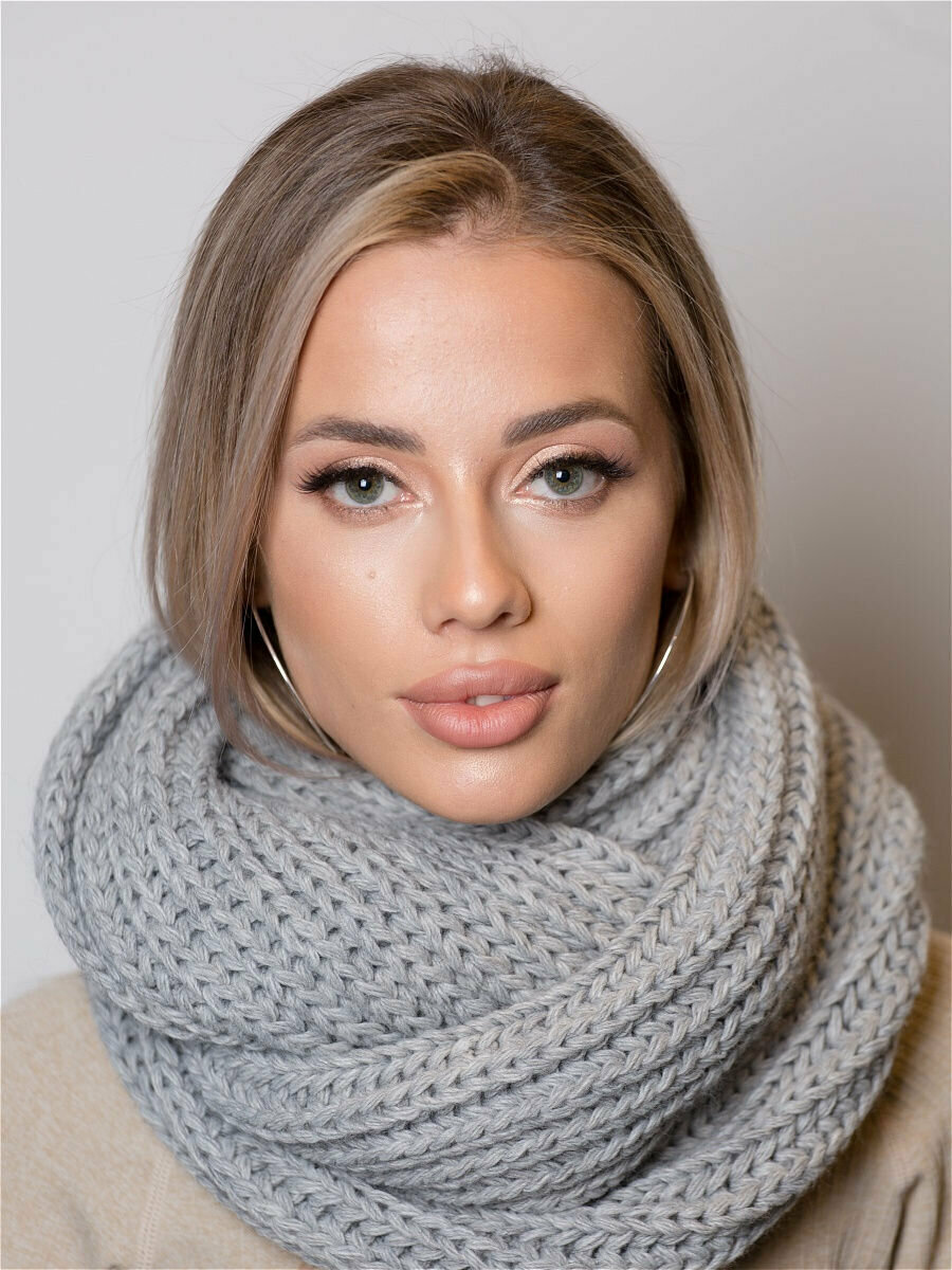 Снуд женский зимний вязаный теплый, шарф, хомут, шапка - шарф, объемный