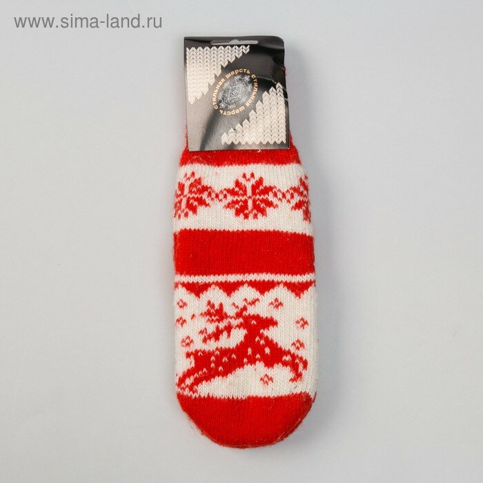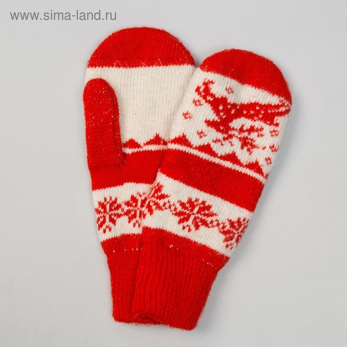 Варежки женские шерстяные, цвет красный/белый, размер 20-22