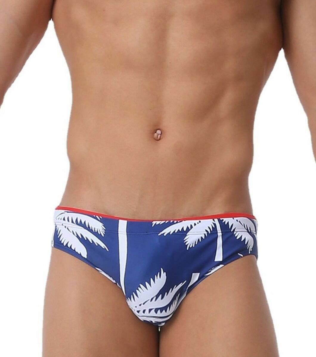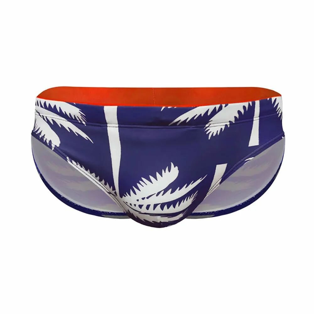Темно-синие мужские плавки-брифы с принтом в виде пальм (Размер: M) (Цвет: темно-синий)