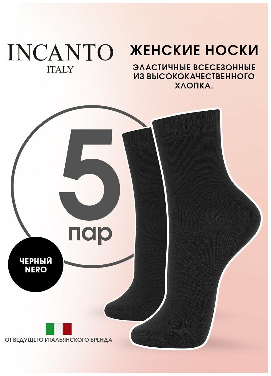 Носки женские набор 5 пар Incanto высокие однотонные хлопковые спортивные летние носочки с резинкой, цвет nero (черный)