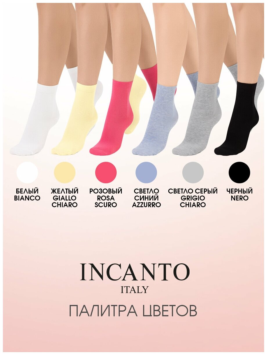 Носки женские набор 5 пар Incanto высокие однотонные хлопковые спортивные летние носочки с резинкой, цвет bianco (белый)