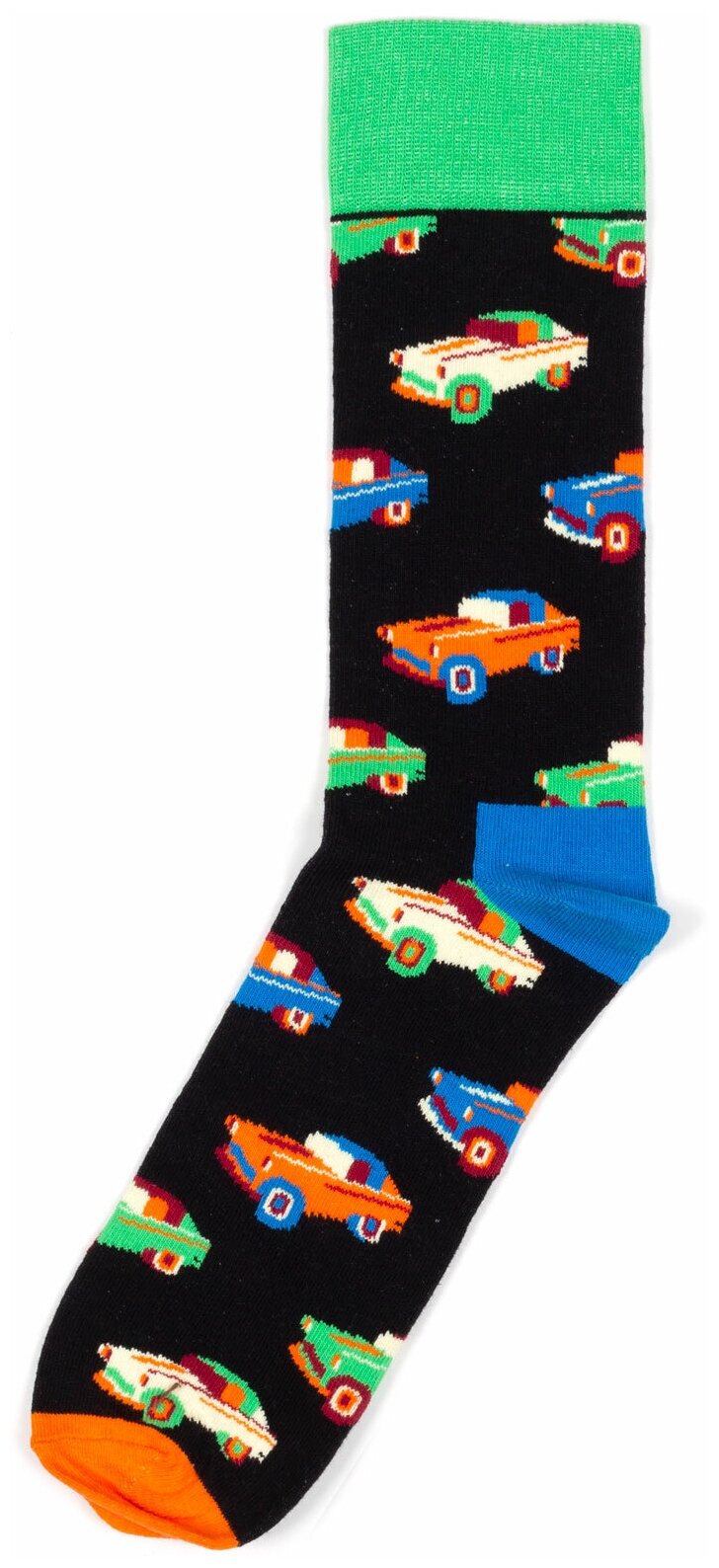 Купить Носки Happy Socks Cars носки с машинками, размер 36-40, черный, зеленый, желтый
