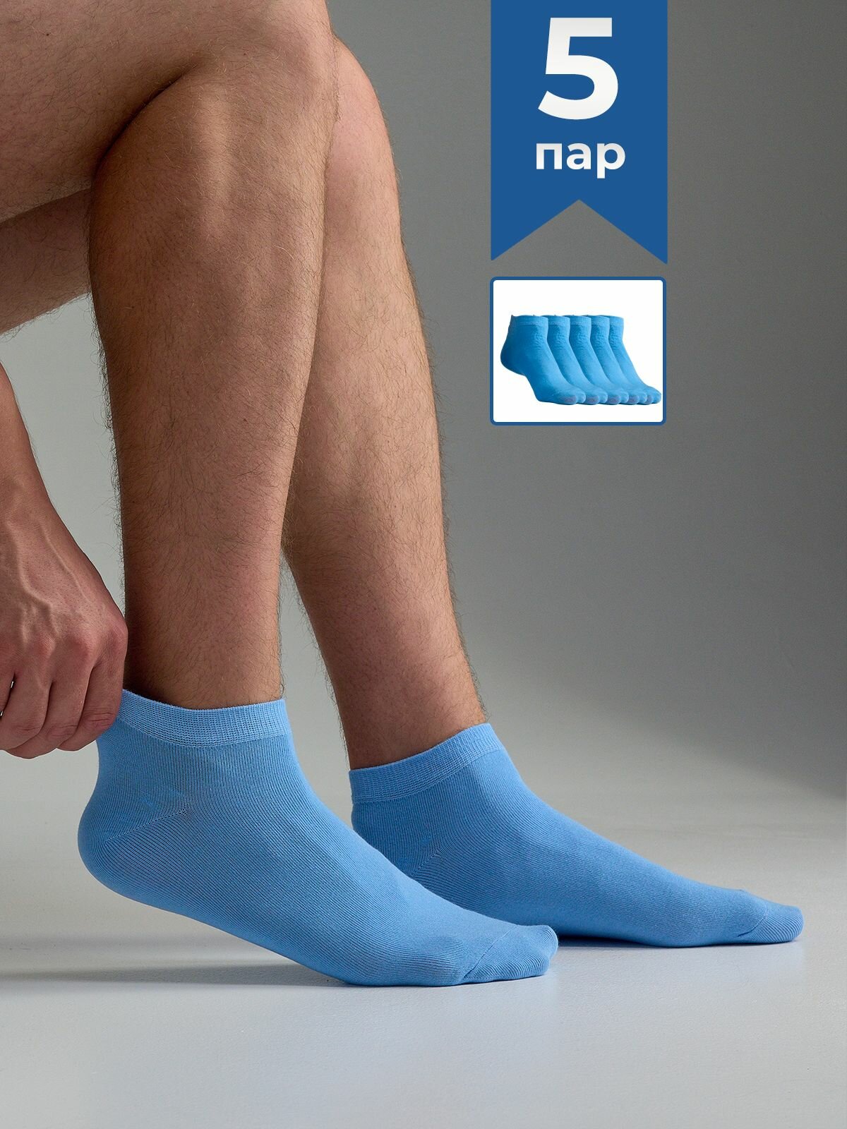 Носки мужские Укороченные Годовой запас, 5 пар, голубые, 25 (39-41)