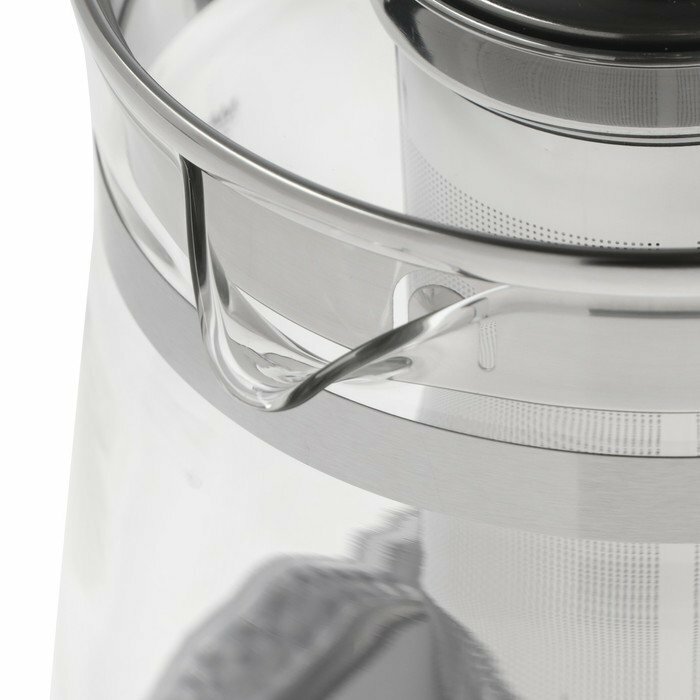 При этом у чайника с полностью стеклянной колбой есть не только функция кипячения, но и несколько режимов подогрева (40, 70, 80 и 90 градусов). 2) Оригинальная (на общем фоне) конструкция - "цилиндр", а не "конус", как в большинстве электро-чайников. 3) Также есть подсветка разными цветами при разной температуре нагрева (правда, в 2019 этим уже мало кого удивишь). 4) В комплекте - съёмный металлический фильтр для заваривания (чая / трав) и специальная подставка для варки яиц. Подставку один раз протестировали и убрали на хранение (всё-таки после неё чайник нужно основательно мыть), а вот фильтр регулярно используем для заварки трав, которые требуют "спец-режима" долгого поддержания высокой температуры и это удобнее, чем заваривать в термосе со стеклянной колбой (хотя и менее "экологично" - есть контакт с металлическим фильтром). |