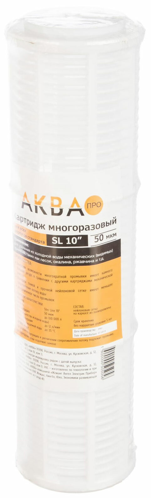 Аква про Картридж многократного использования , 10SL 50мкм ХВС Кит. MY-NET. 404