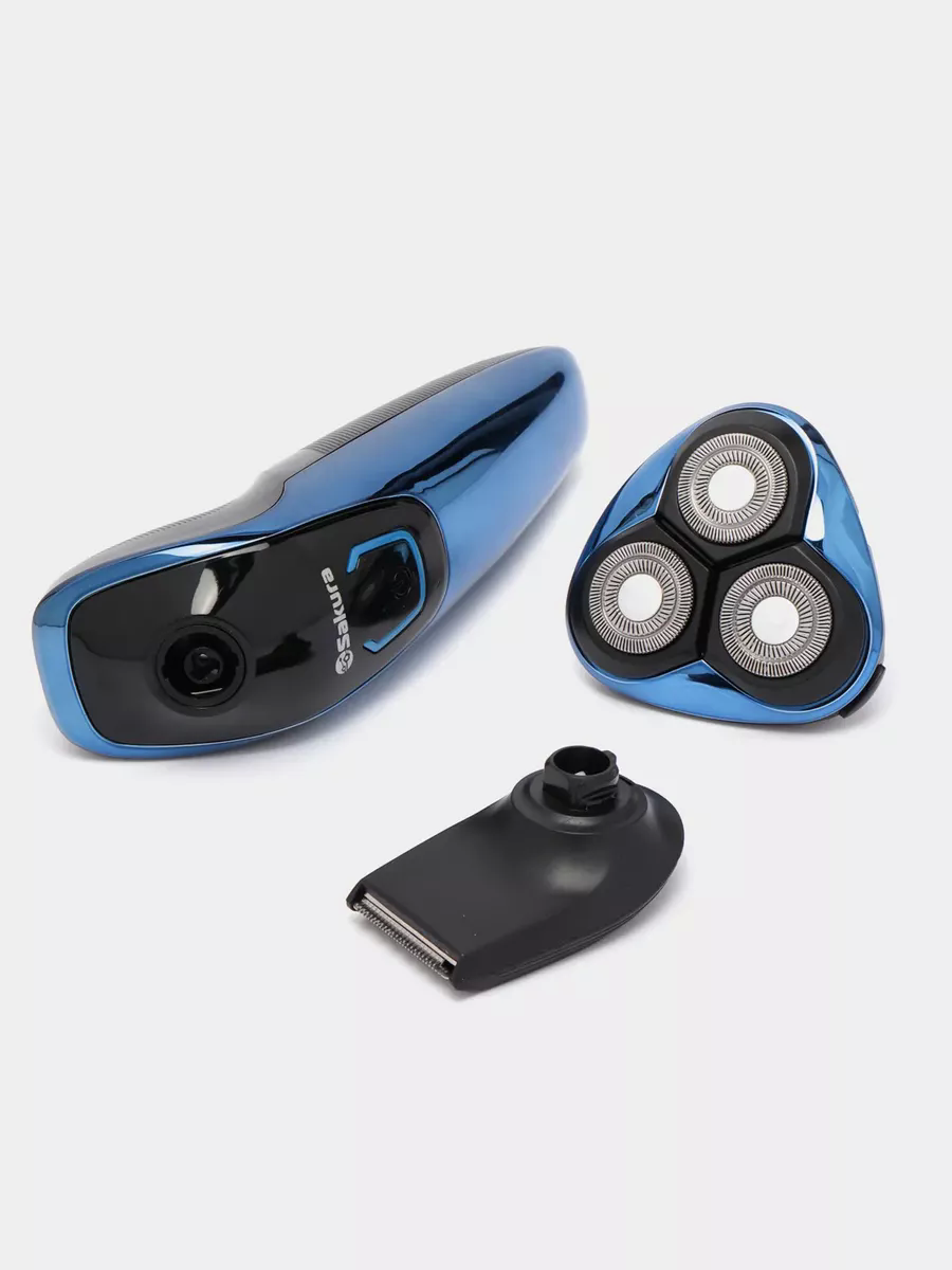 SAKURA Электробритва Sakura SA-5420BL,3 Вт, роторная, 3 головки, сухое/влажное бритьё, триммер, АКБ