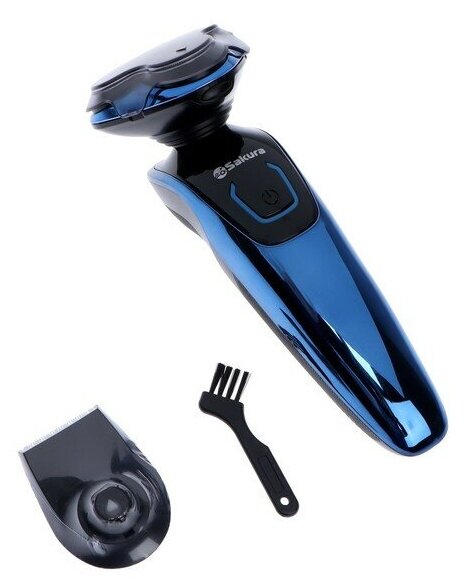SAKURA Электробритва Sakura SA-5420BL,3 Вт, роторная, 3 головки, сухое/влажное бритьё, триммер, АКБ