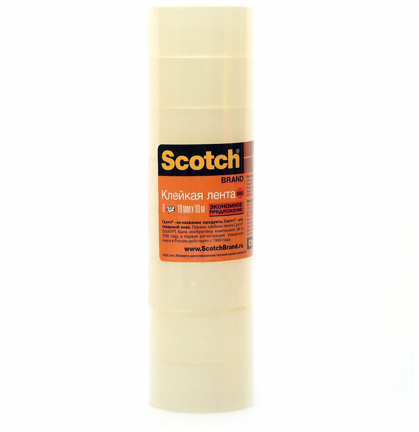 Клейкая лента (скотч) канцелярская 3M Scotch 500 (19мм x 10м, 45мкм, прозрачная, втулка пластик) 8шт. (500-1910) интересное: