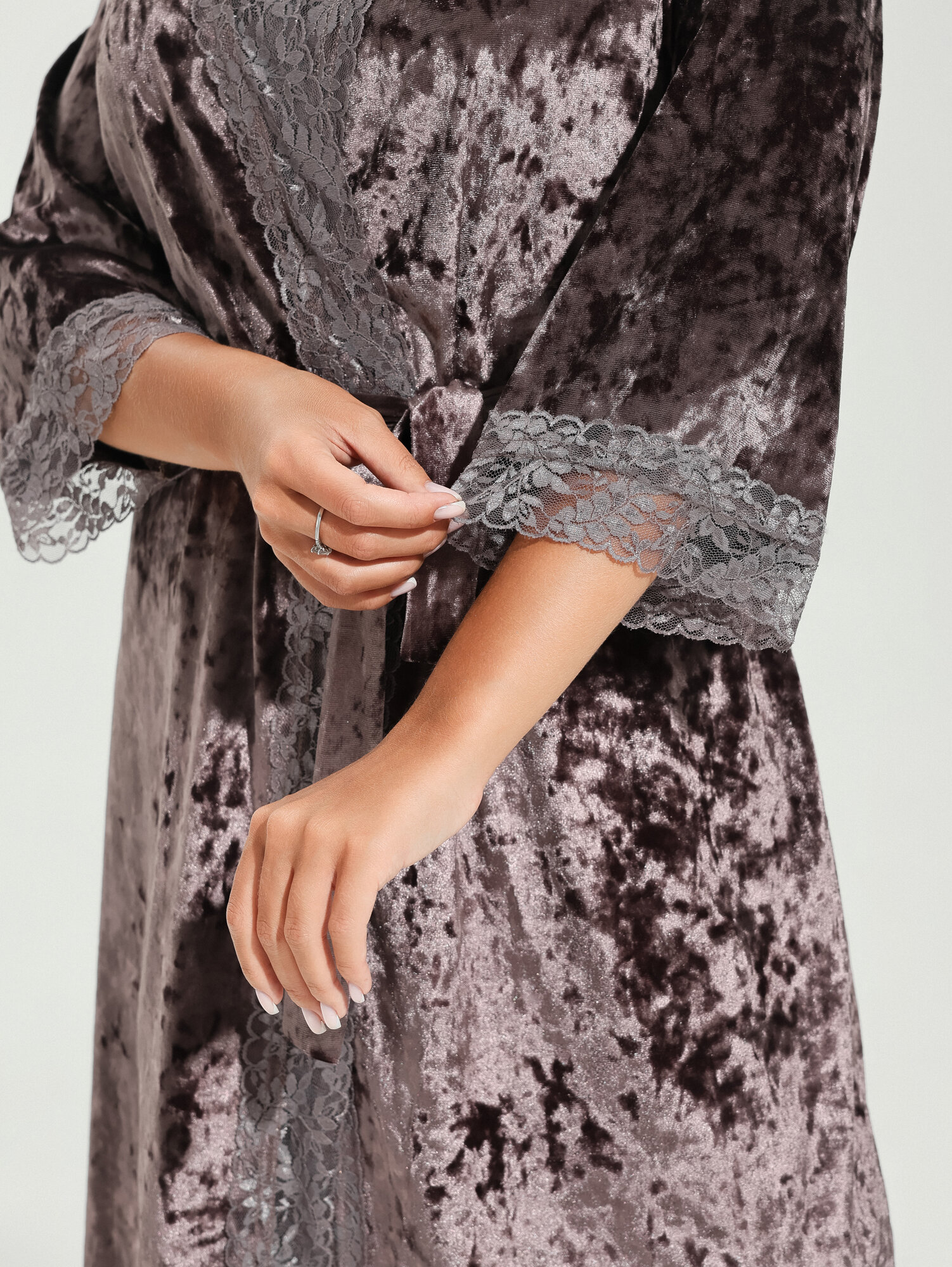 Lovetex.store / Пеньюар кружевной бархатный, халат + сорочка / серый / размер 44