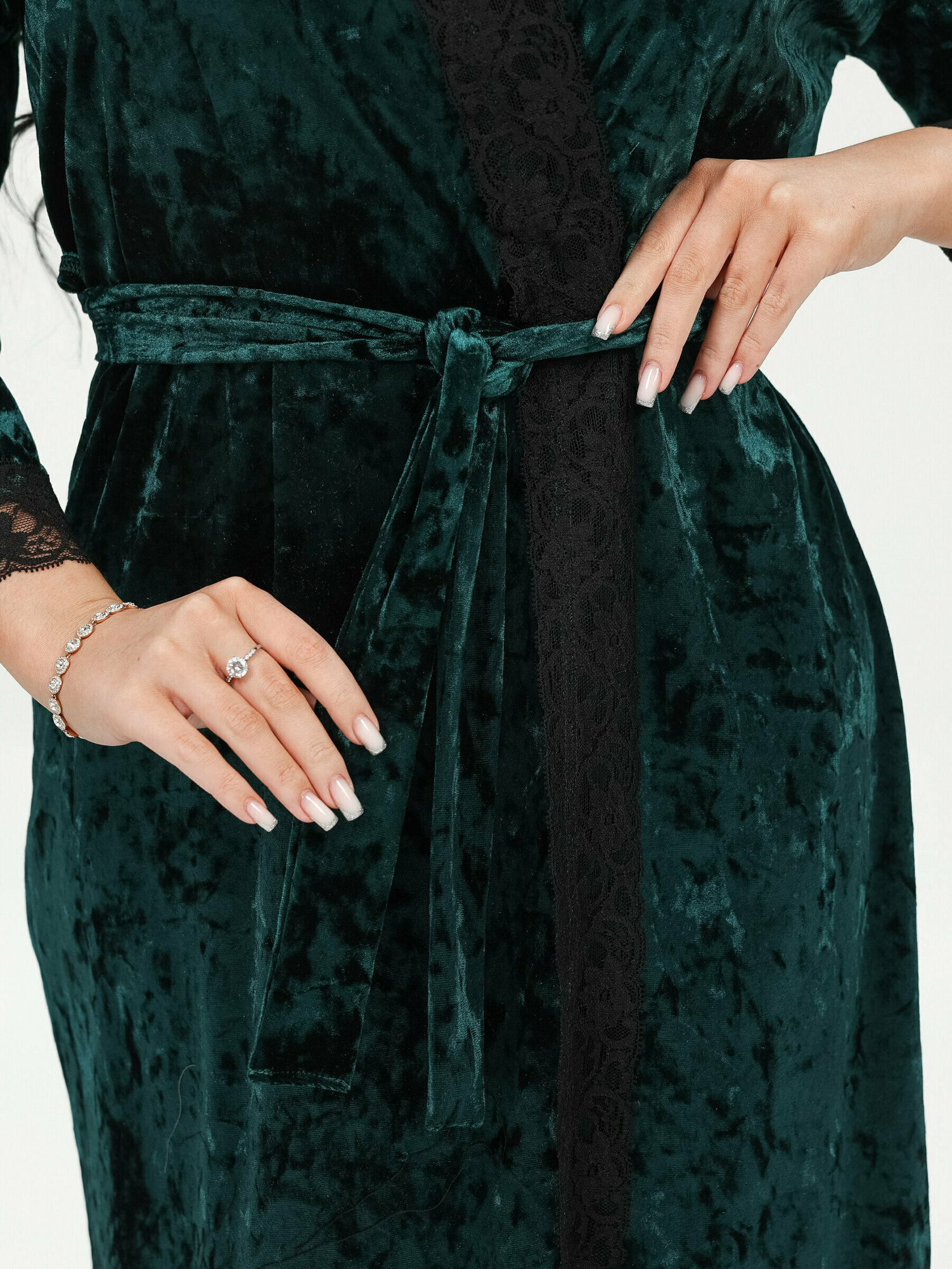 Lovetex.store / Пеньюар кружевной бархатный, халат + сорочка / изумруд / размер 44