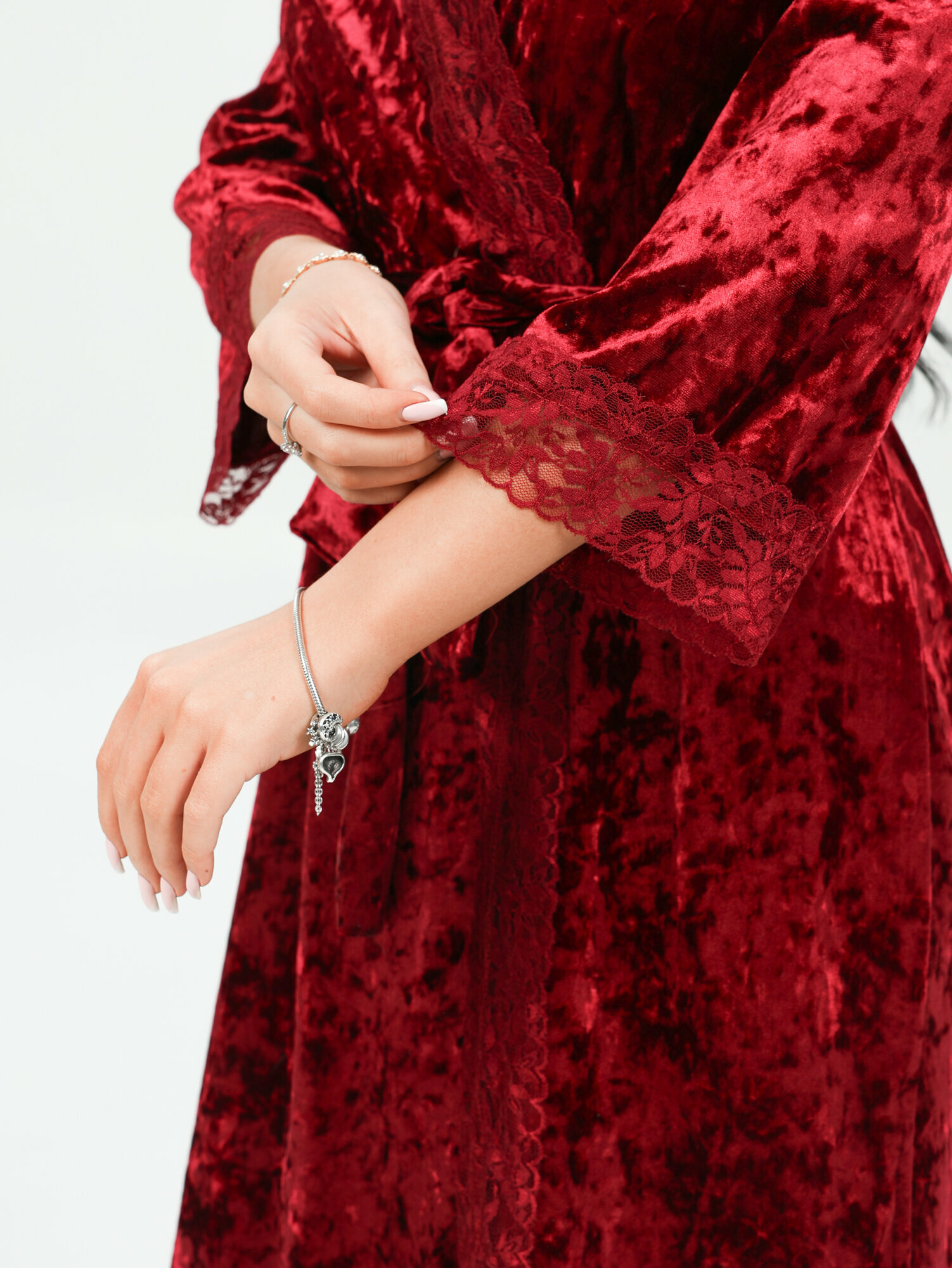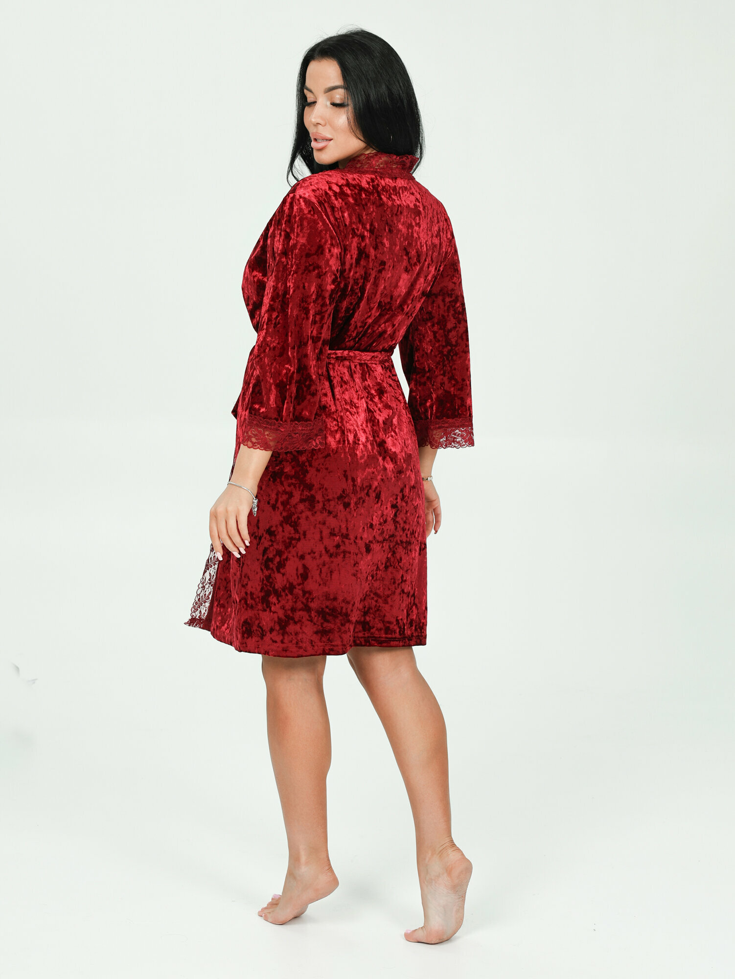 Lovetex.store / Пеньюар кружевной бархатный, халат + сорочка / бордо / размер 44