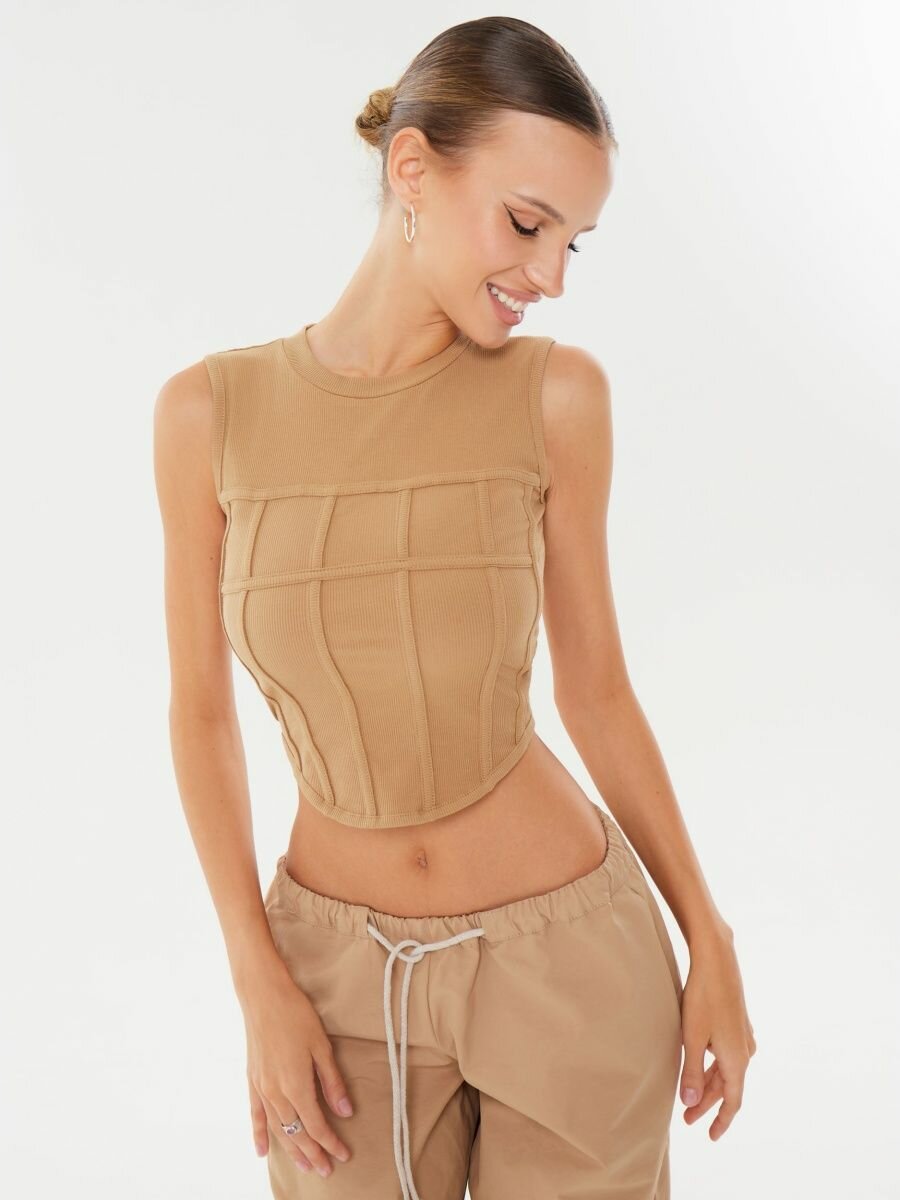 Топ укороченный без рукавов Dazy, бежевый, XS