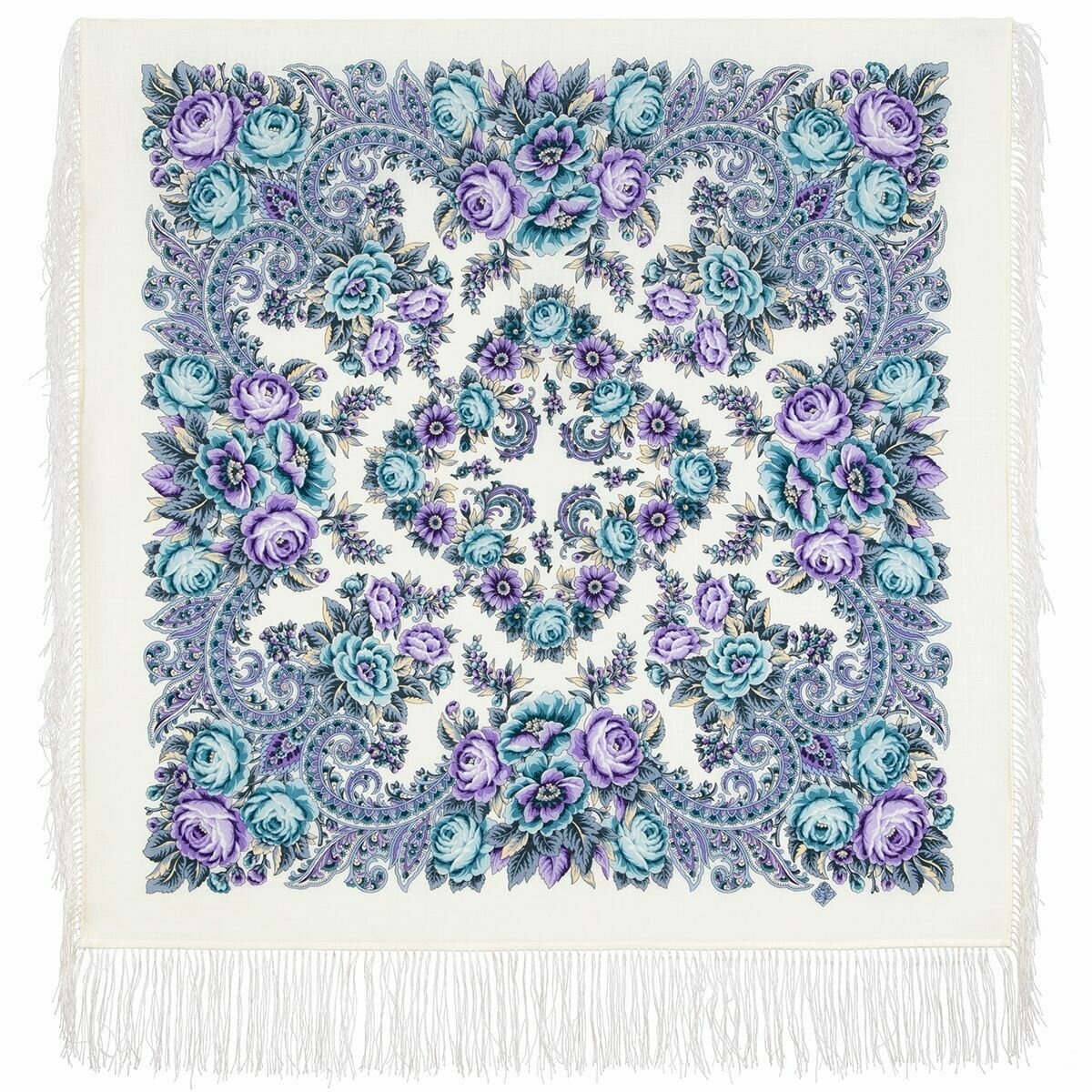 Платок шерстяной Павловопосадские платки На солнечной поляночке 3, белый, 89 х 89 см