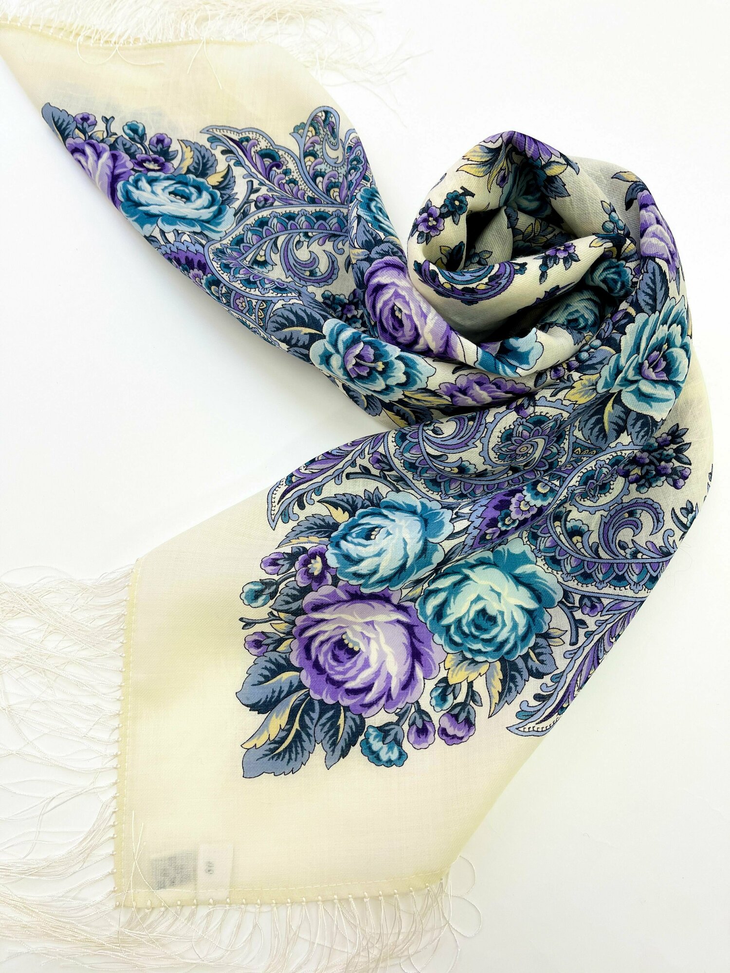 Платок шерстяной Павловопосадские платки На солнечной поляночке 2, белый, 89 х 89 см