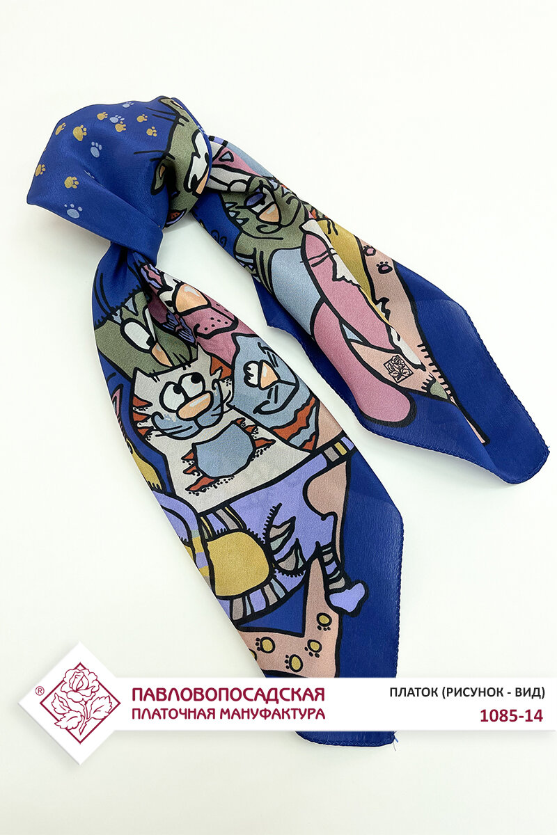 Платок Павловопосадская платочная мануфактура для женщин,65х65 см, синий интересное: