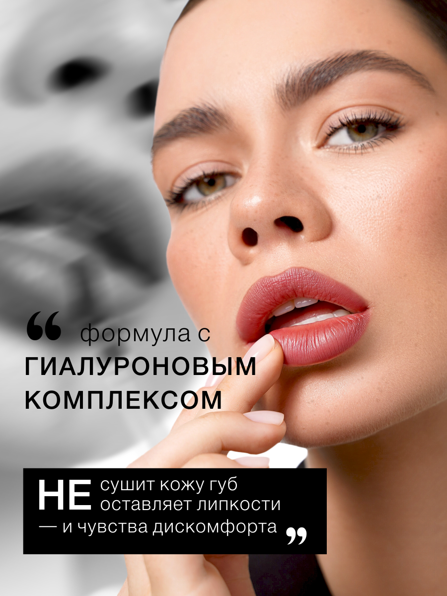 | Состав | Гиалуроновый комплекс в составе обеспечивает трехмерное увлажнение, делая кожу губ гладкой и эластичной в течение всего дня. |