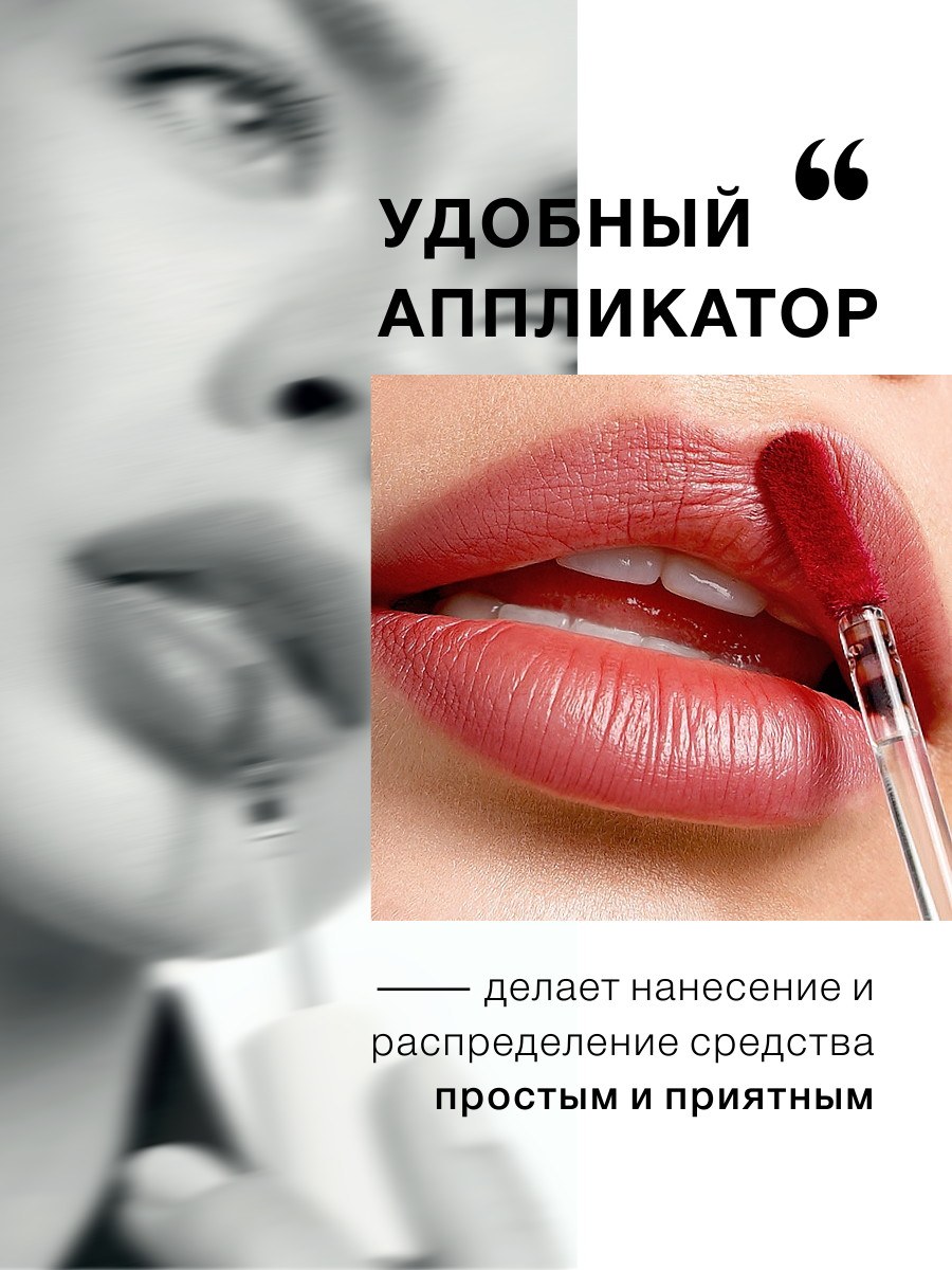 | Дополнительная информация | Тинт для губ на легкой водно-гелевой основе и повышенной концентрацией пигментов придает губам естественный оттенок и матовый финиш, усиливает выразительность и яркость природного цвета губ. Спустя несколько секунд после нанесения жидкая текстура высыхает и впитывается в кожу губ, превращаясь в невесомое полупрозрачное покрытие с эффектом "макияж без макияжа". Благодаря удобному аппликатору оттеночный гель-тинт для губ легко наносится и равномерно распределяется, не растекается за контур. |