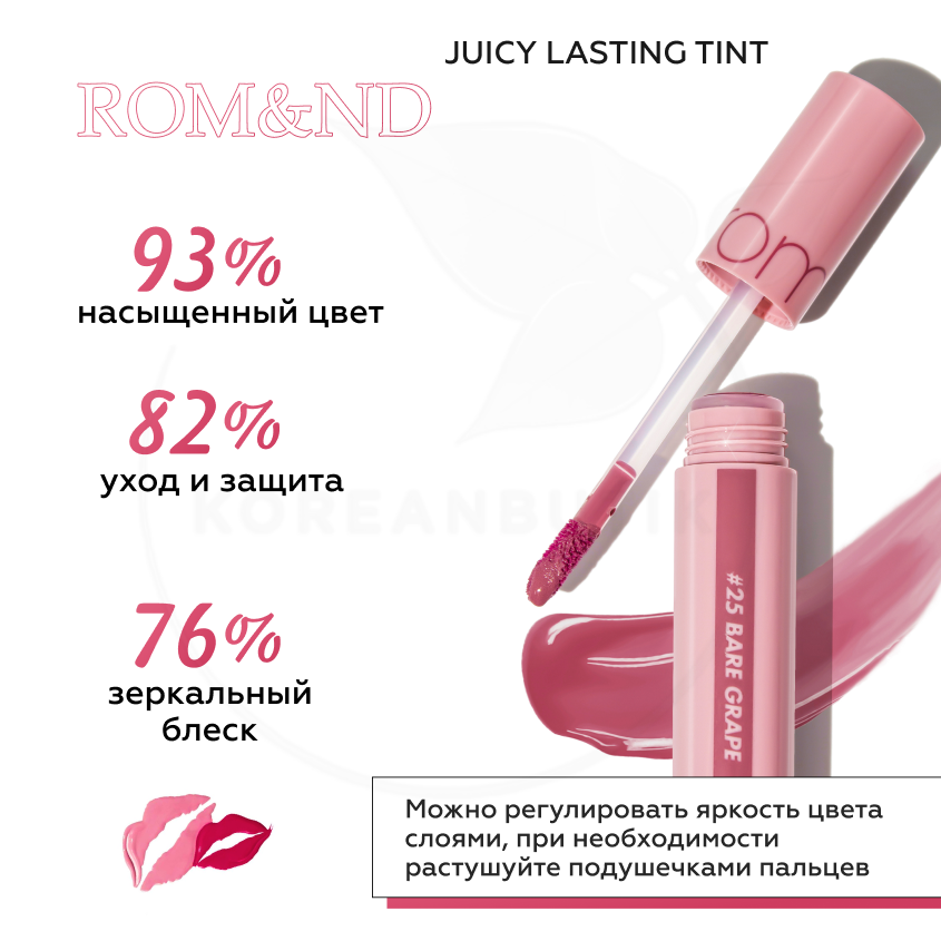 Купить Тинт глянцевый для губ | ROM&ND JUICY LASTING TINT 25. BARE GRAPE