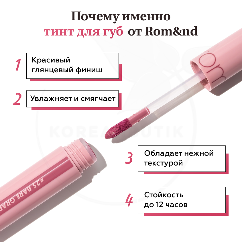 СохранитьТинт глянцевый для губ | ROM&ND JUICY LASTING TINT 25. BARE GRAPE интересное: