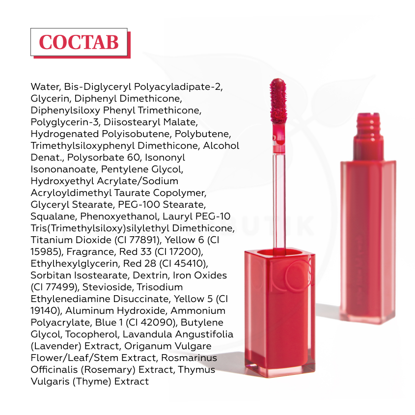 | Состав | Dimethicone, Dimethicone Crosspolymer, Polyglyceryl-2 Triisostearate, Diisostearyl Malate, Tribehenin, Yellow 5 Lake (CI 19140), Iron Oxides (CI 77491), Titanium Dioxide (CI 77891), Cetyl PEG/PPG-10/1 Dimethicone, VP/Hexadecene Copolymer, Red 7 (CI 15850:1), Iron Oxides (CI 77492), Polyglyceryl-2 Diisostearate, Butyl Acrylate/Hydroxypropyl Dimethicone Acrylate Copolymer, Isododecane, Isobutylmethacrylate/Bis-Hydroxypropyl Dimethicone Acrylate Copolymer, Fragrance(Parfum), Dehydroacetic Acid, Water, Glycerin, Butylene Glycol, Sucrose Palmitate, Hydrogenated Lecithin, Macadamia Ternifolia Seed Oil, Olea Europaea (Olive) Fruit Oil, Simmondsia Chinensis (Jojoba) Seed Oil, Vitis Vinifera (Grape) Seed Oil, Gossypium Herbaceum (Cotton) Seed Extract |