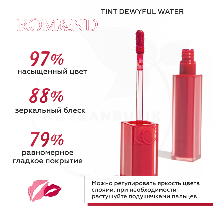 СохранитьТинт глянцевый для губ | ROM&ND Dewyful Water Tint 07. CHERRY WAY интересное: