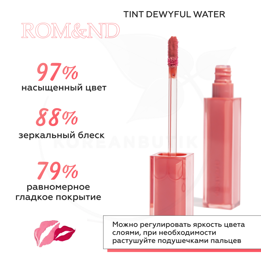 СохранитьТинт глянцевый для губ | ROM&ND Dewyful Water Tint 02. SALTY PEACH интересное: