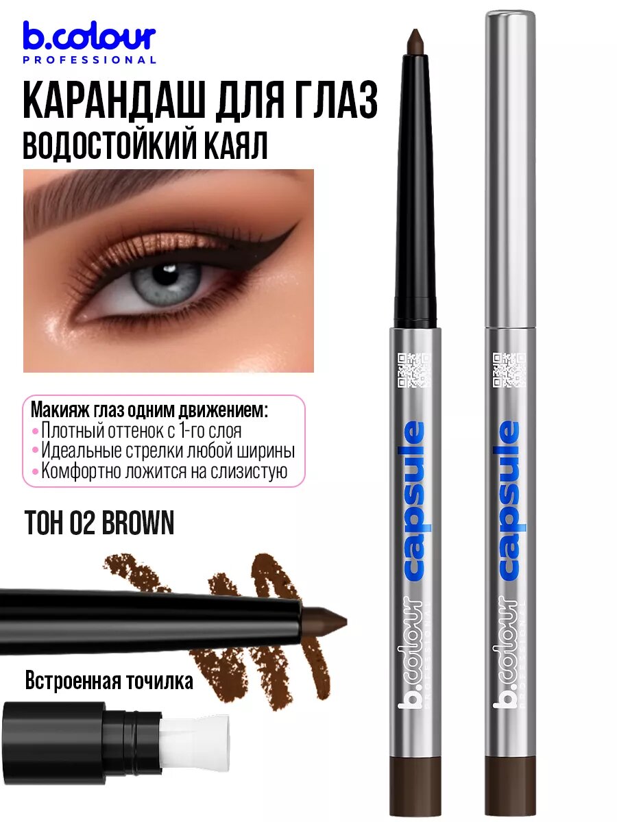 Купить B.COLOUR PROFESSIONAL Карандаш для глаз каял гелевый, водостойкий CAPSULE, 02 BROWN