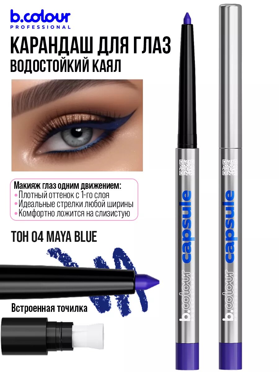 Карандаш для глаз B.COLOUR PROFESSIONAL CAPSULE синий каял для слизистой гелевый водостойкий 04 Maya blue