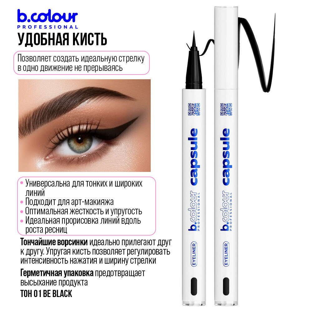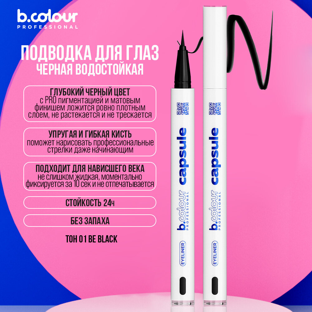 Ниже Вы можете прочитать отзывы на B.COLOUR PROFESSIONAL Подводка для глаз черная водостойкая CAPSULE, 01 BE BLACK, ознакомится с подробными характеристиками, посмотреть интересные обзоры и фотографии на B.COLOUR PROFESSIONAL Подводка для глаз черная водостойкая CAPSULE, 01 BE BLACK.