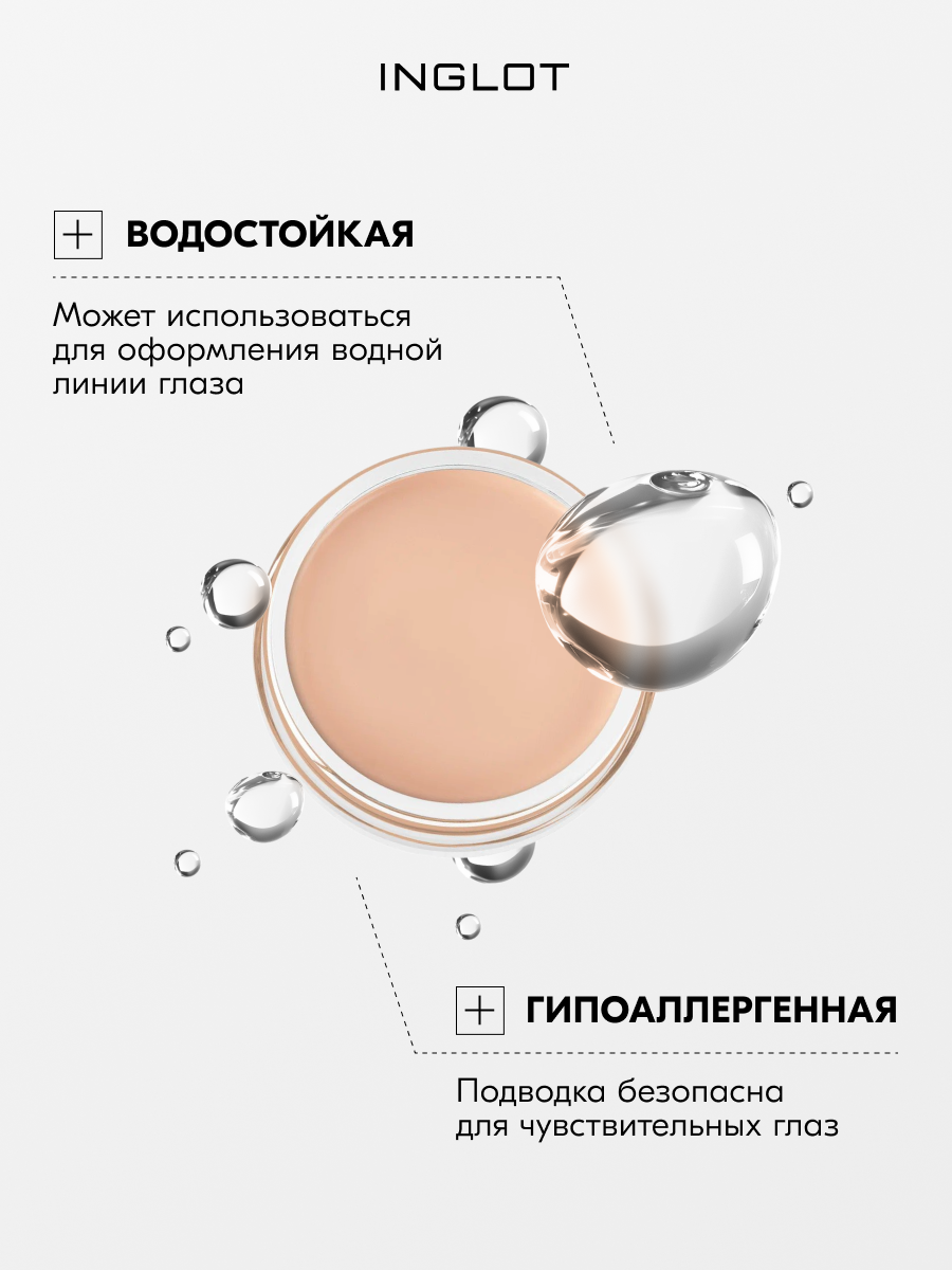 | Способ применения | Наберите небольшое количество подводки для фиксации при контакте с воздухом. Подготовьте веко для нанесения подводки: протрите кожу век мицеллярной водой или средством для снятия макияжа, затем нанесите тонким слоем консилер + пудру/тени или основу для макияжа глаз, чтобы нейтрализовать выработку кожного себума. Дайте подводке высохнуть ~1 минуту, с опущенными вниз глазами, затем можно полностью открывать веки и смотреть наверх. |