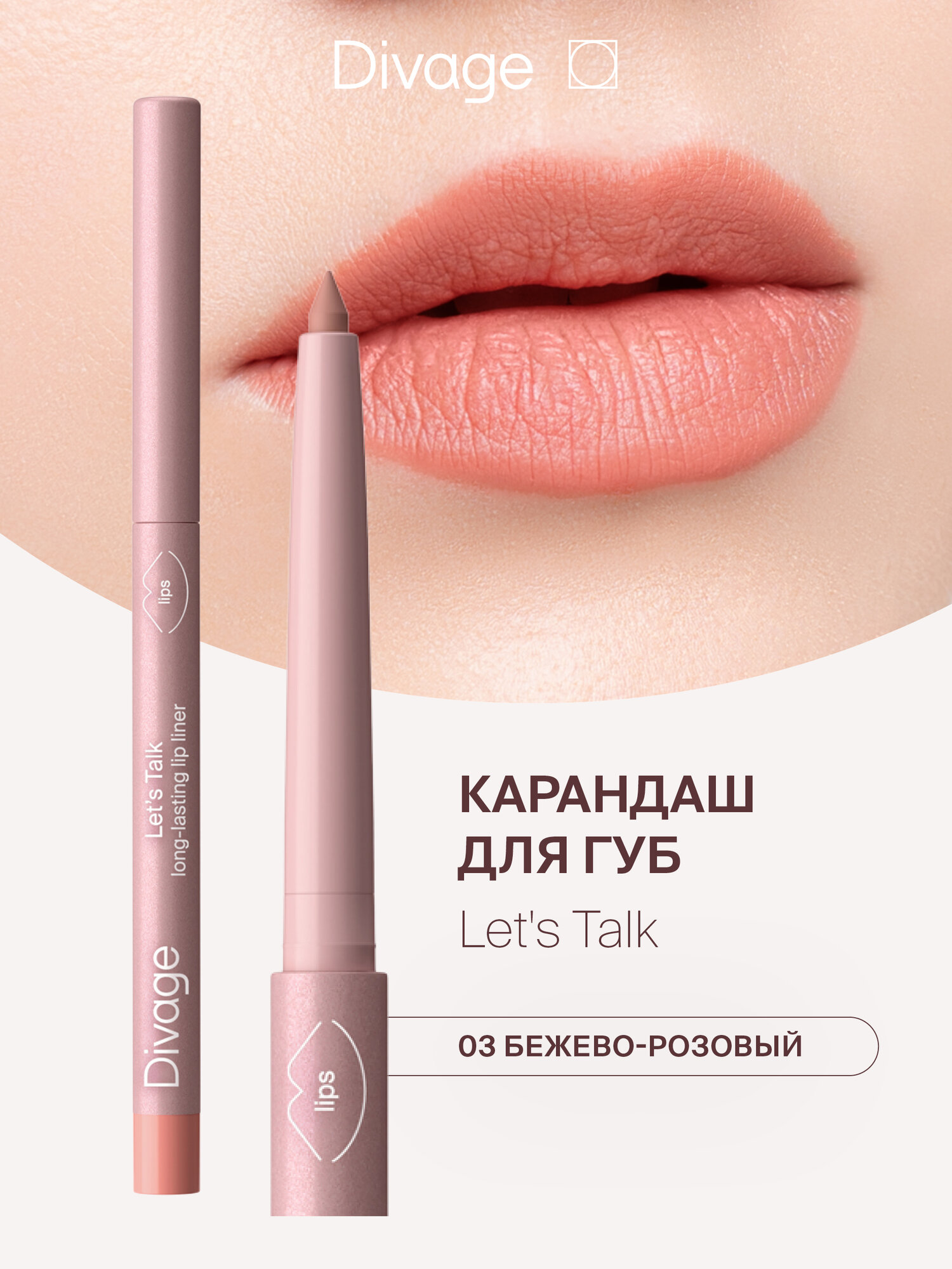 Купить Divage Автоматический карандаш для губ Let’s Talk long-lasting lip liner Тон 03 бежево-розовый