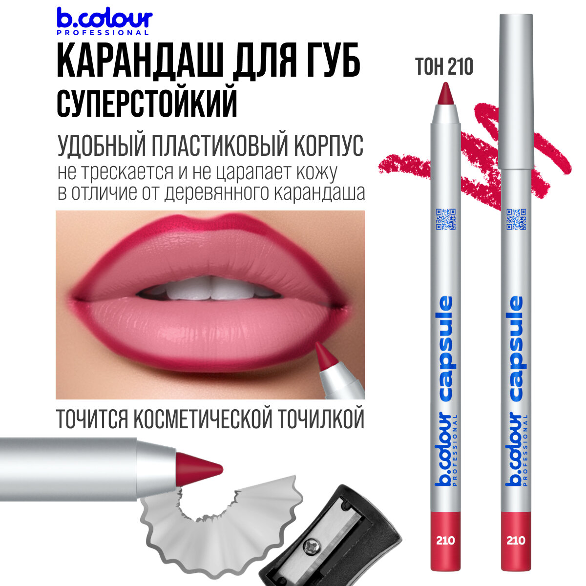 Ниже Вы можете прочитать отзывы на B.COLOUR PROFESSIONAL Карандаш для губ матовый стойкий CAPSULE 210, ознакомится с подробными характеристиками, посмотреть интересные обзоры и фотографии на B.COLOUR PROFESSIONAL Карандаш для губ матовый стойкий CAPSULE 210.