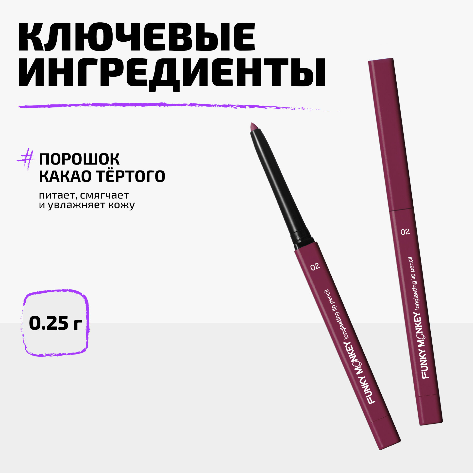Funky Monkey Карандаш для губ стойкий Longlasting lip pencil тон 02
