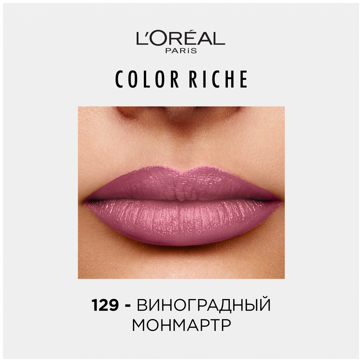 L'OREAL Помада для губ Color Riche увлажняющая, 4.8 мл, 129 Виноградный Монмартр