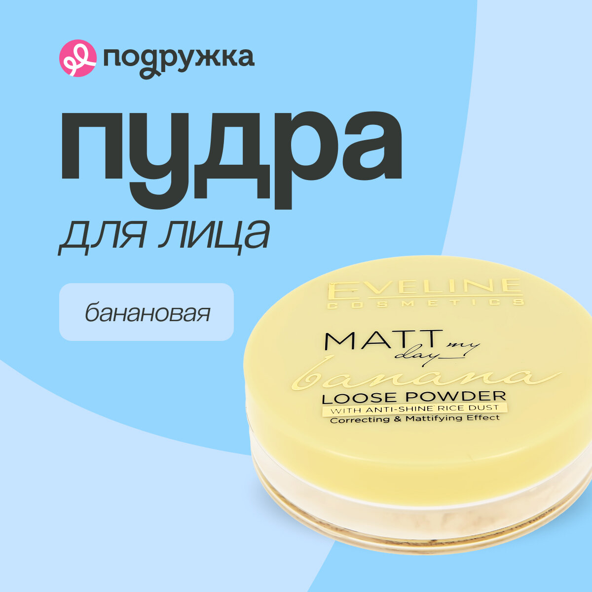 Ниже Вы можете прочитать отзывы на Пудра рассыпчатая для лица EVELINE MATT MY DAY банановая, ознакомится с подробными характеристиками, посмотреть интересные обзоры и фотографии на Пудра рассыпчатая для лица EVELINE MATT MY DAY банановая.